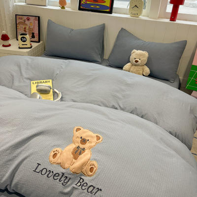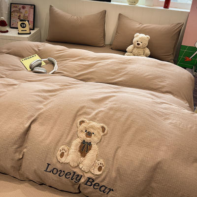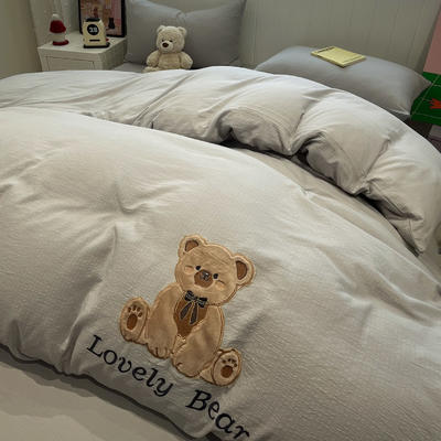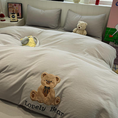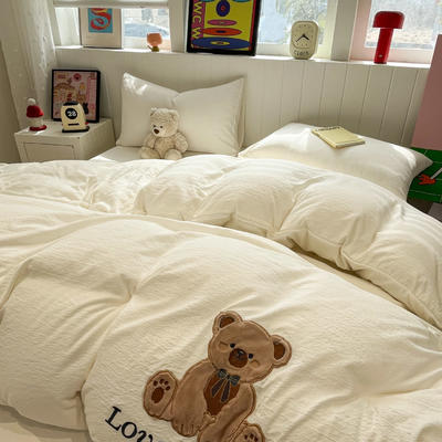 - 牛奶绒贴布绣暖意小熊系列床褥学生款