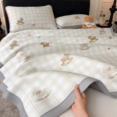 - PE凉感冰豆豆凉席贴布绣床席款-八宝熊-绑带款【场景一】