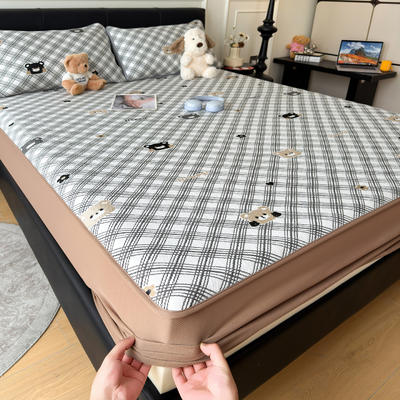- PE双提花乙纶豆豆席床笠-拿铁熊