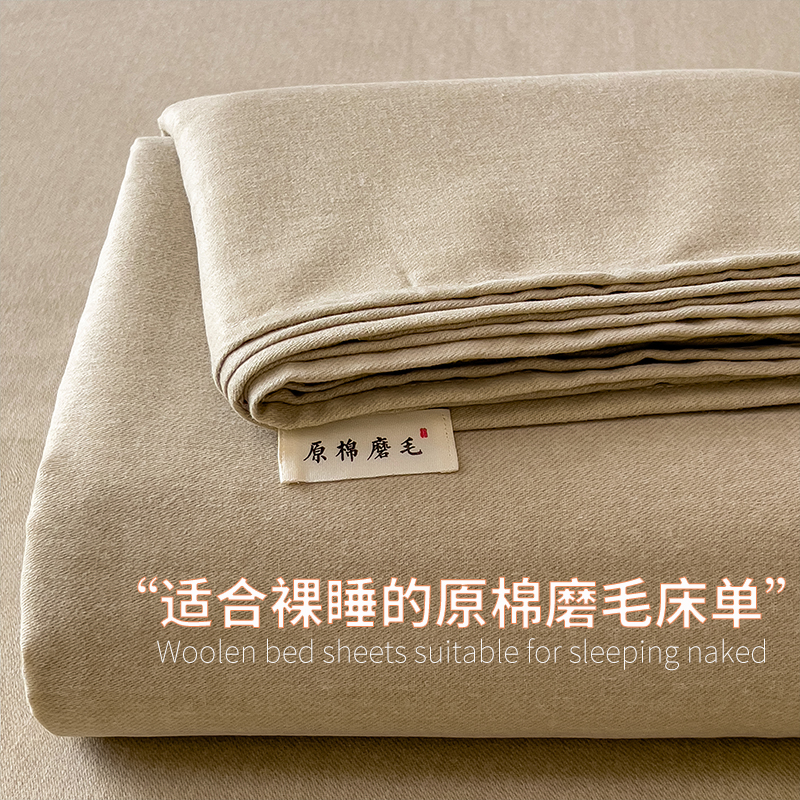- 2025新款原棉生态磨毛单床单 奶茶咖