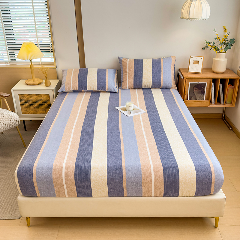 - 2025新款原棉生态磨毛单床笠 冰川蓝