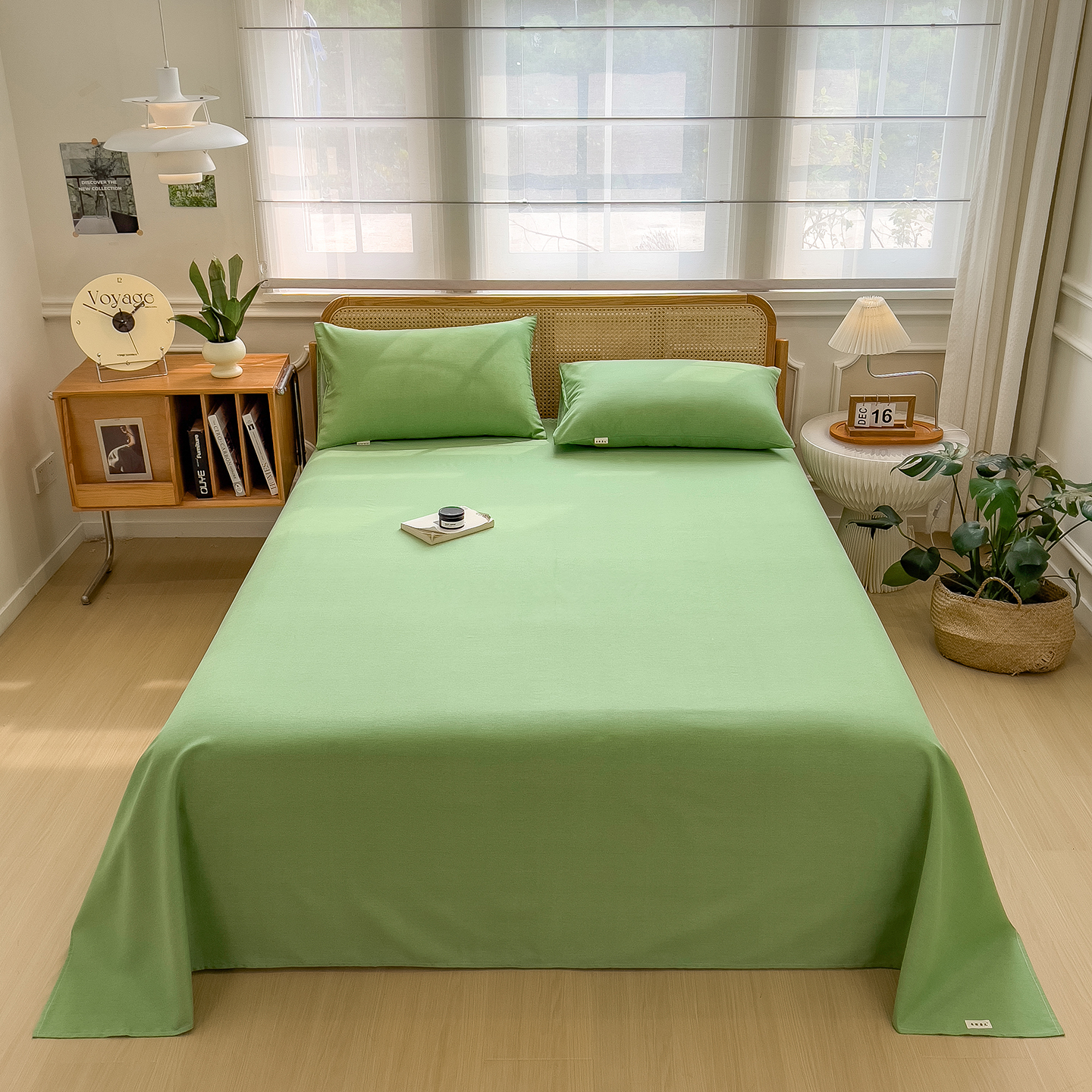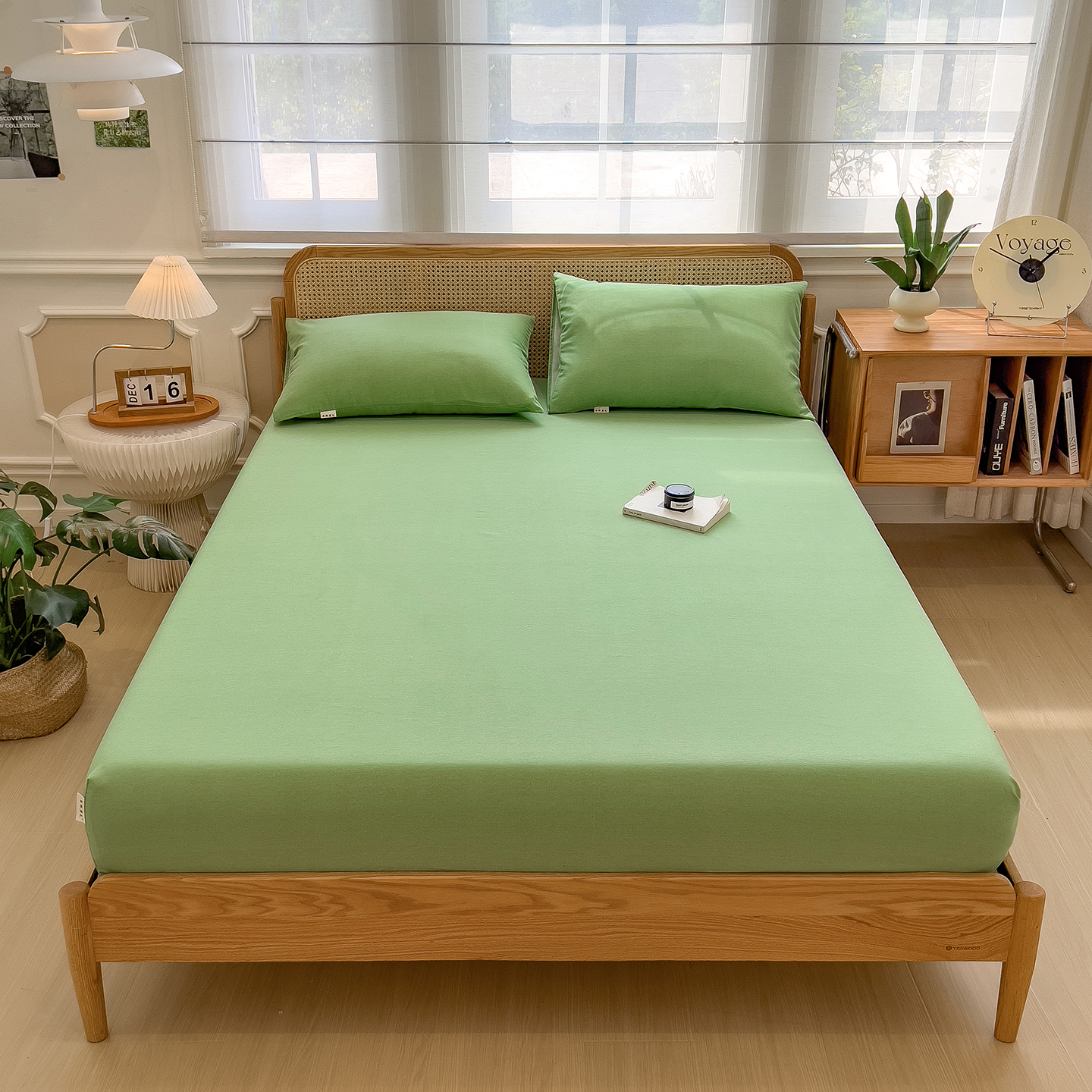 - 2025新款原棉生态磨毛单床笠 薄荷绿