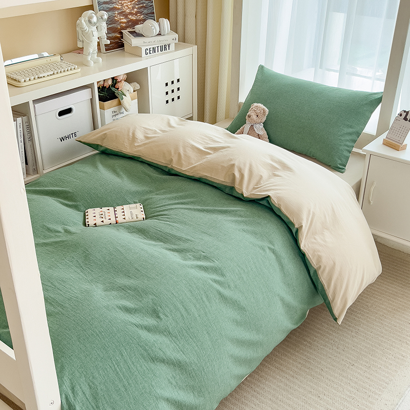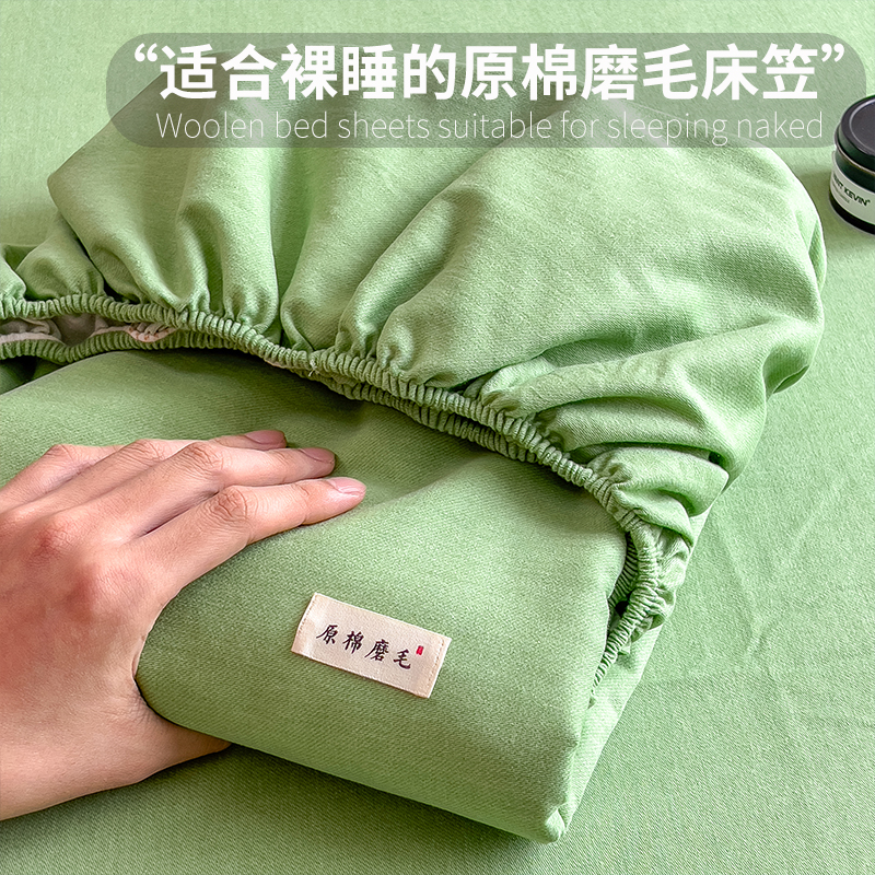 - 2025新款原棉生态磨毛单床笠 墨染绿
