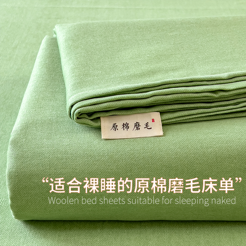 - 2025新款原棉生态磨毛单床单 松针绿