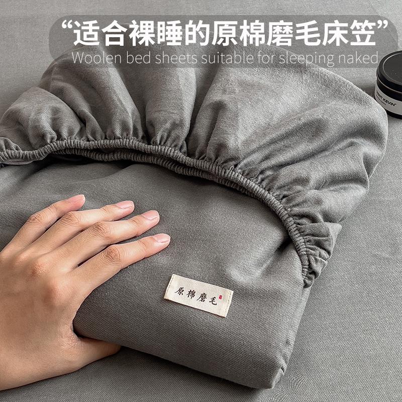 - 2025新款原棉生态磨毛单床笠 高级灰
