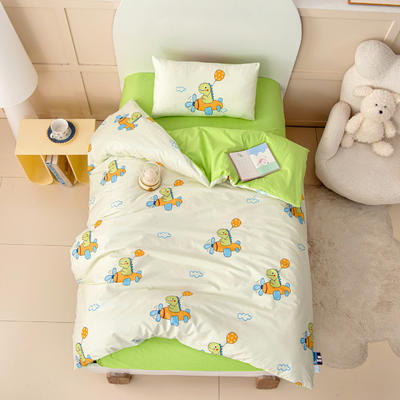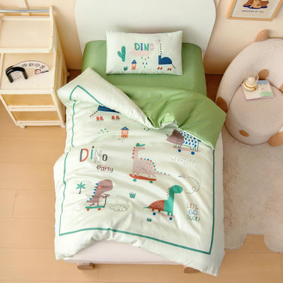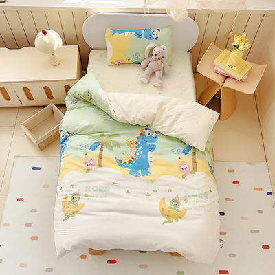 - 长绒棉-A类纯色拼接幼儿园三件套(绿色恐龙)