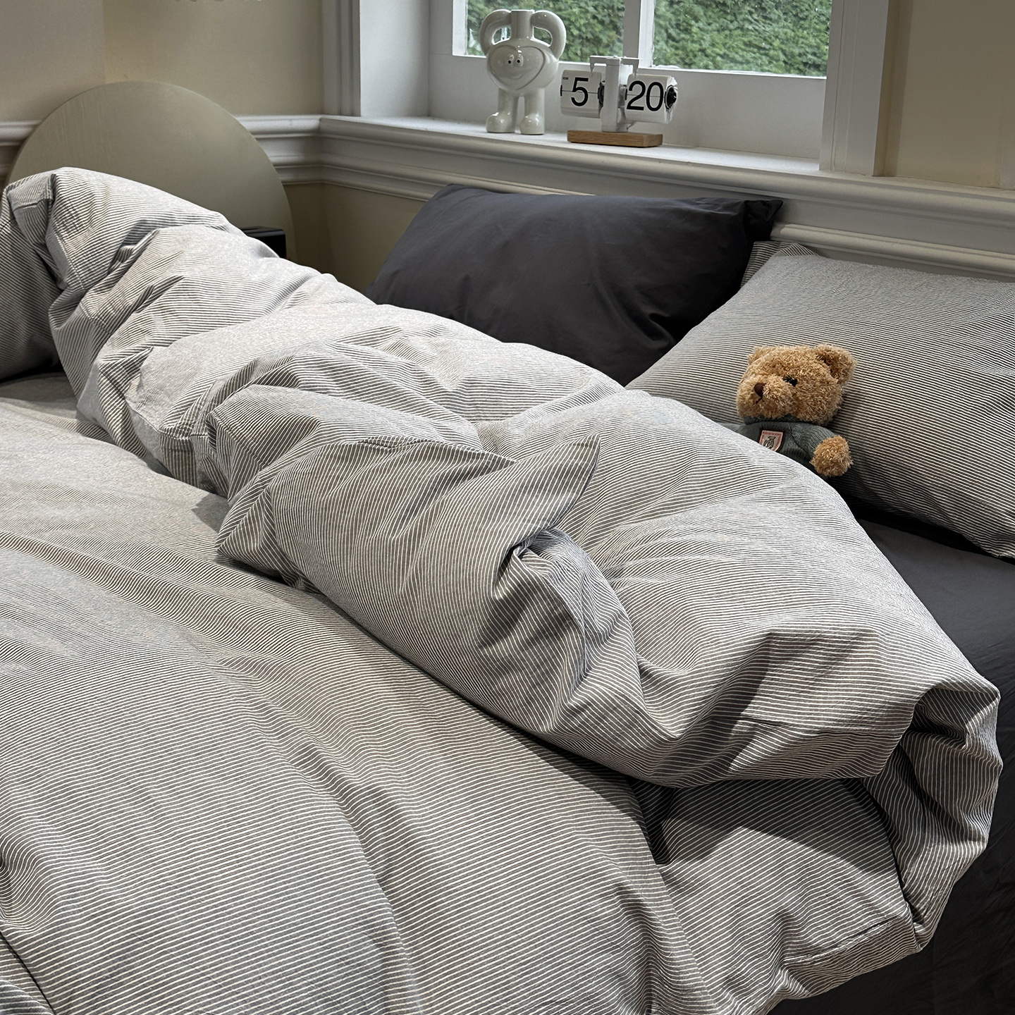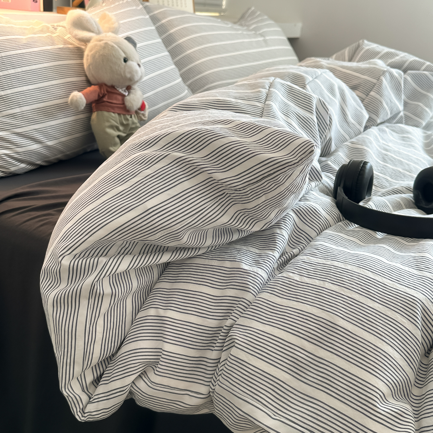 - 2026新款软糯水洗棉条格无印宜家风混搭系列单品被套 混搭灰条