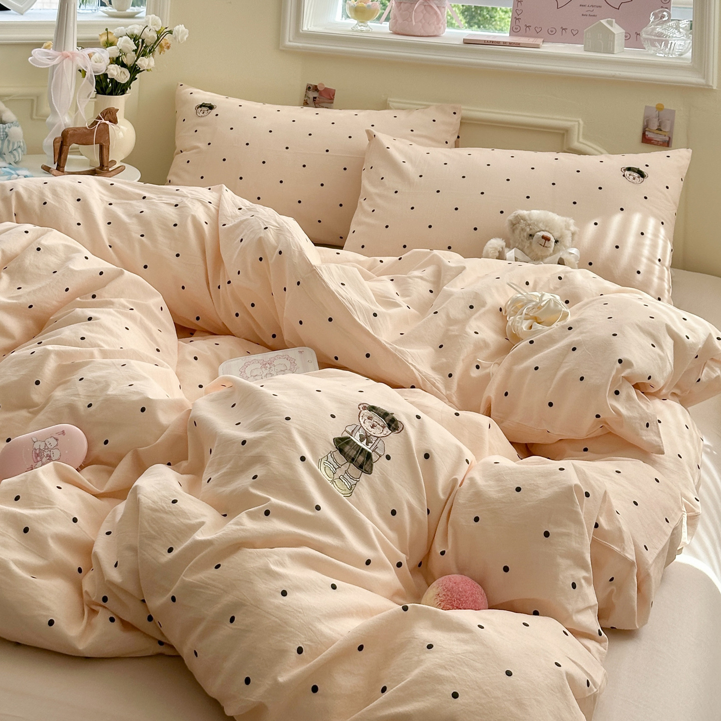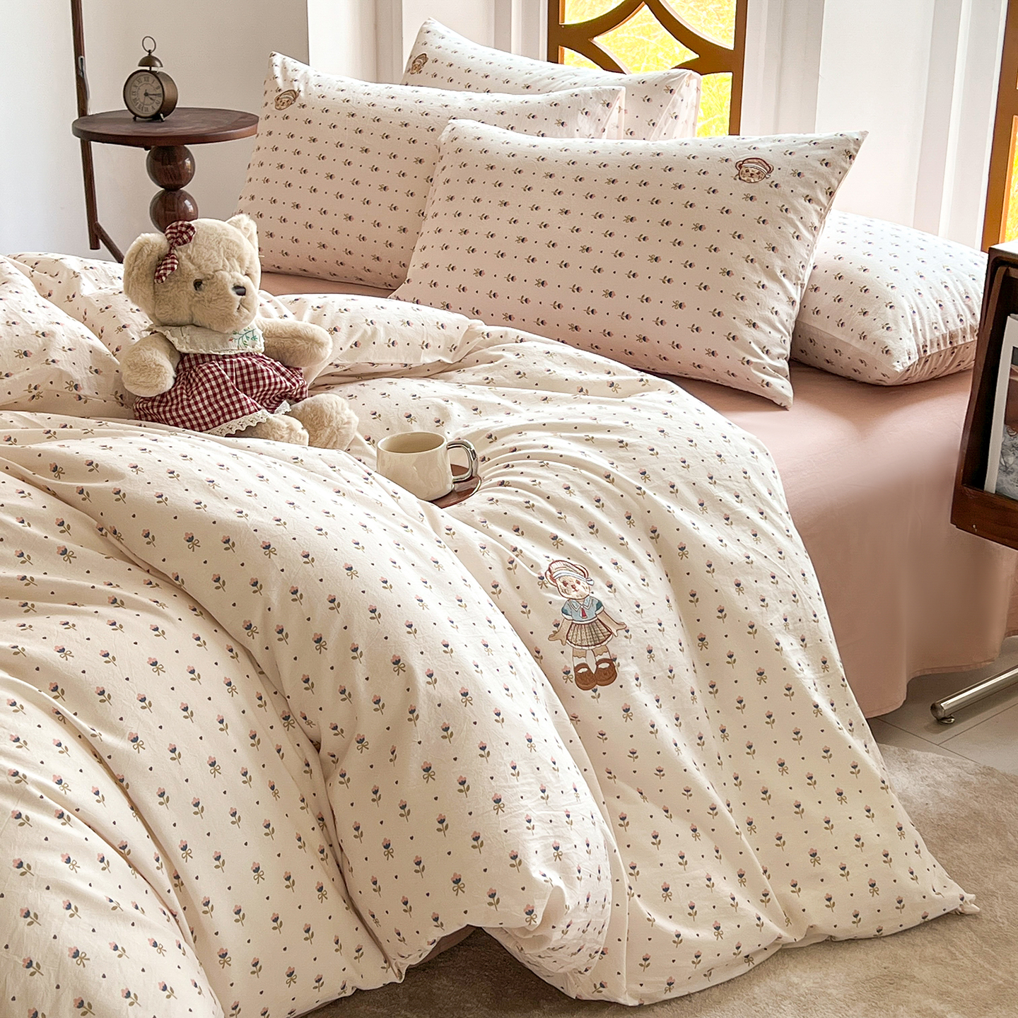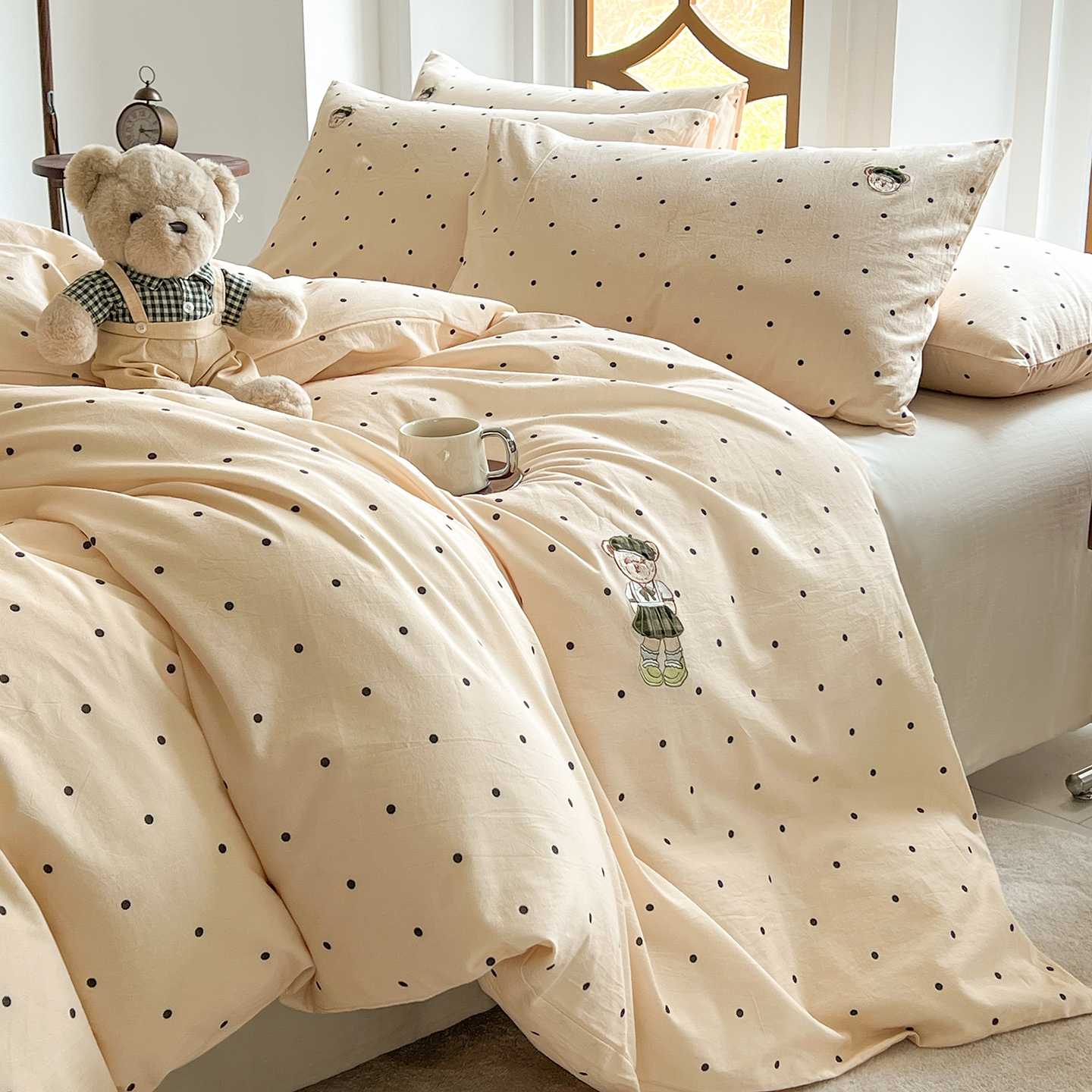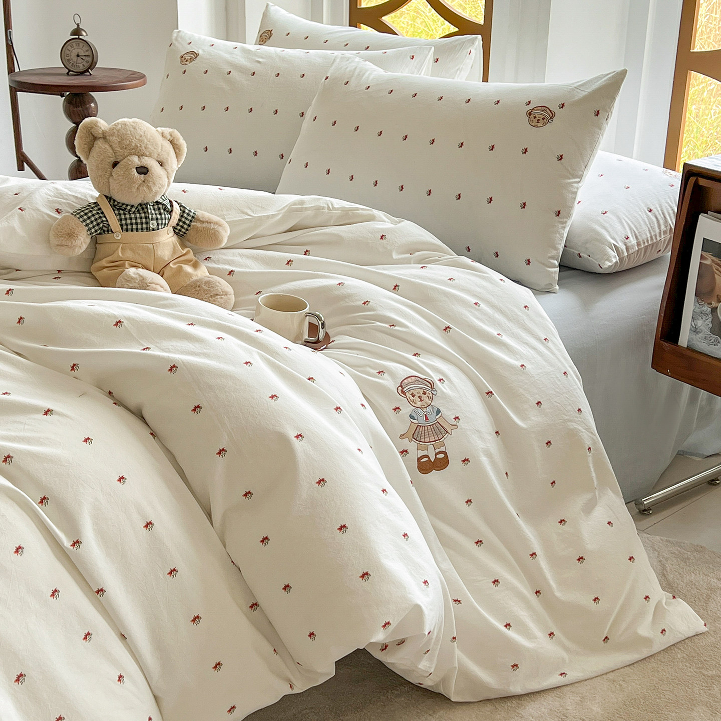 - 2026新款软糯云朵棉水洗棉刺绣三件套四件套嘟嘟小熊系列风格1 邂逅
