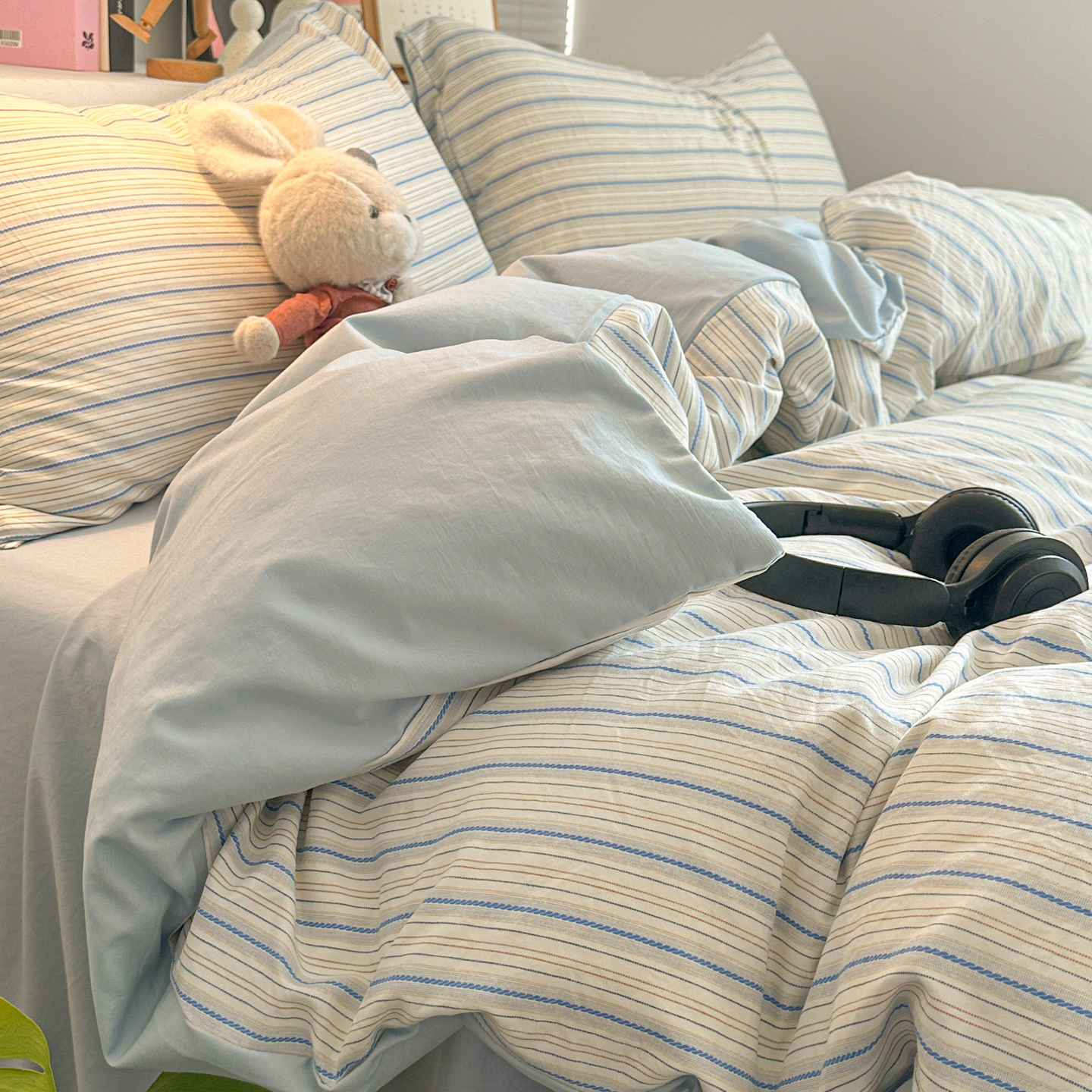 - 2026新款软糯水洗棉条格无印宜家风混搭系列单品被套 混搭蓝格
