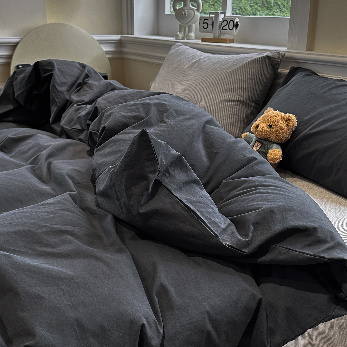 - 2026新款软糯亲肤仿棉水洗棉三件套四件套 空间灰