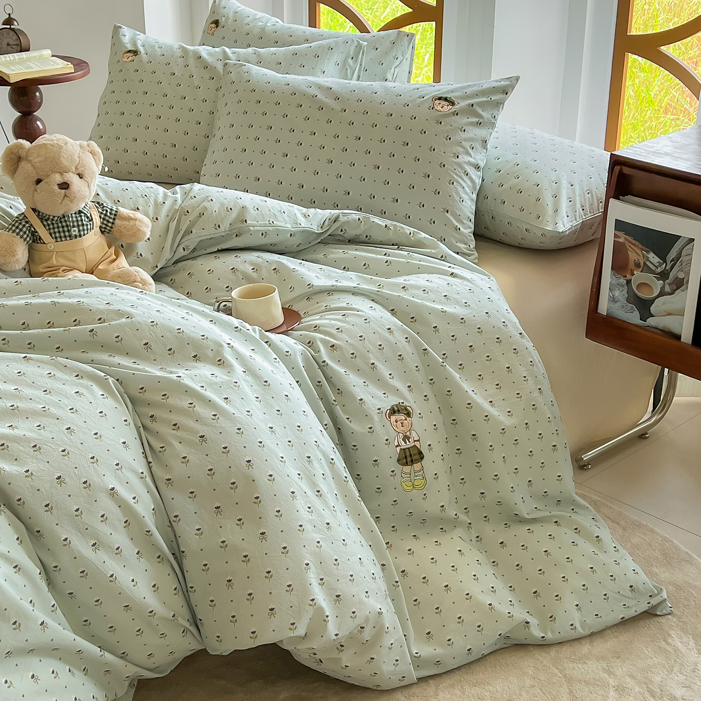 - 2026新款软糯云朵棉水洗棉刺绣三件套四件套嘟嘟小熊系列风格1 清风