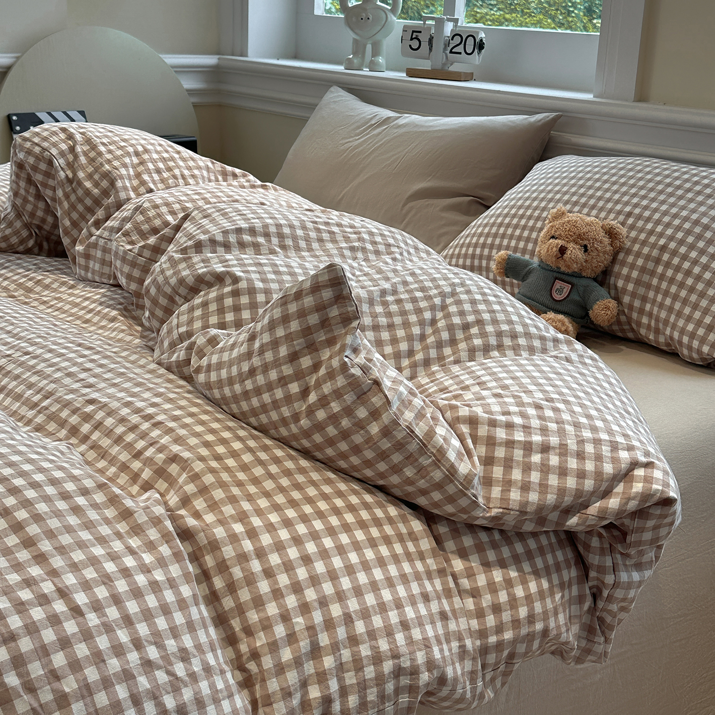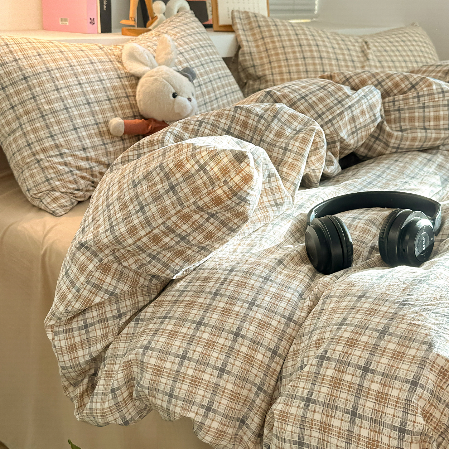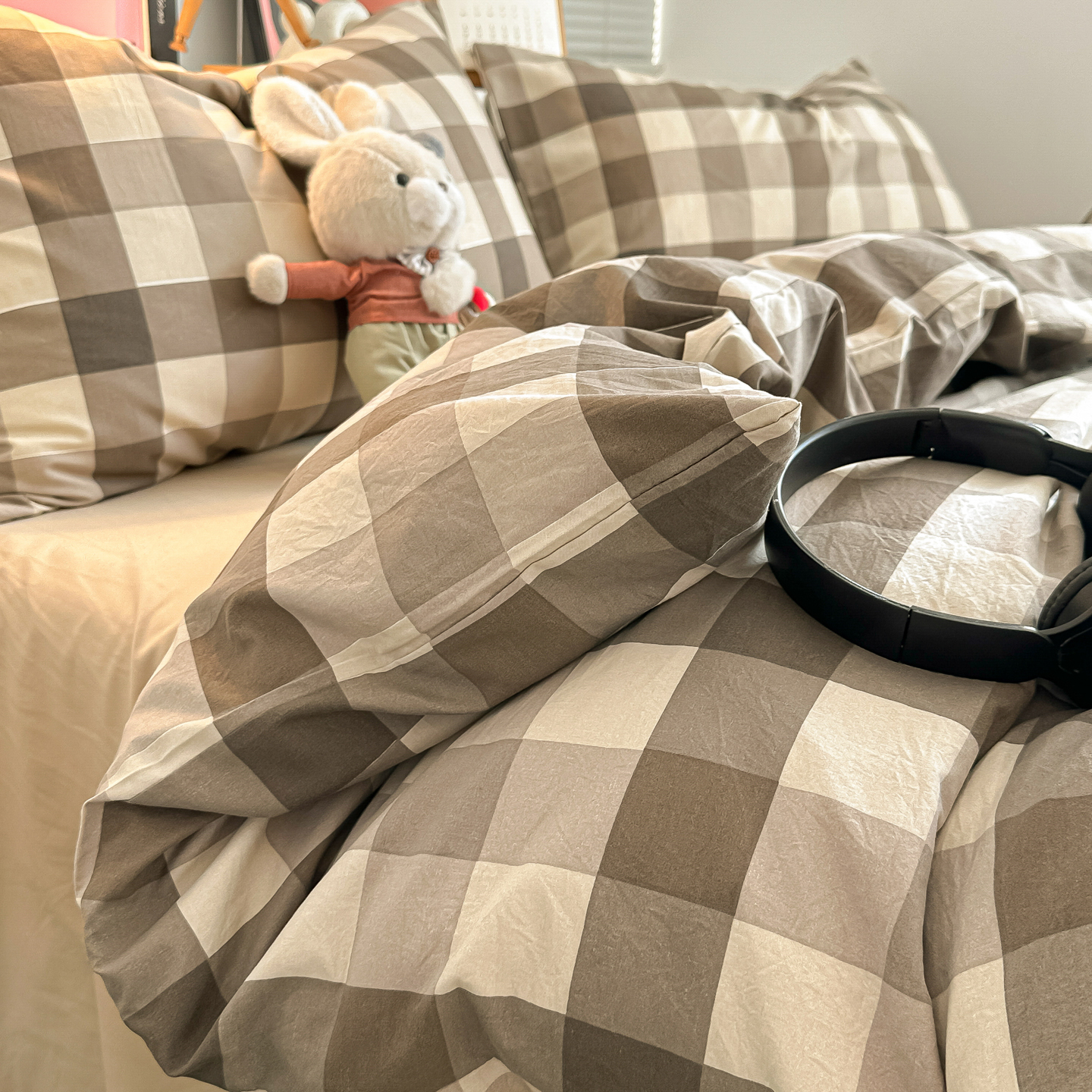 - 2026新款软糯水洗棉条格无印宜家风混搭系列单品被套 混搭咖格