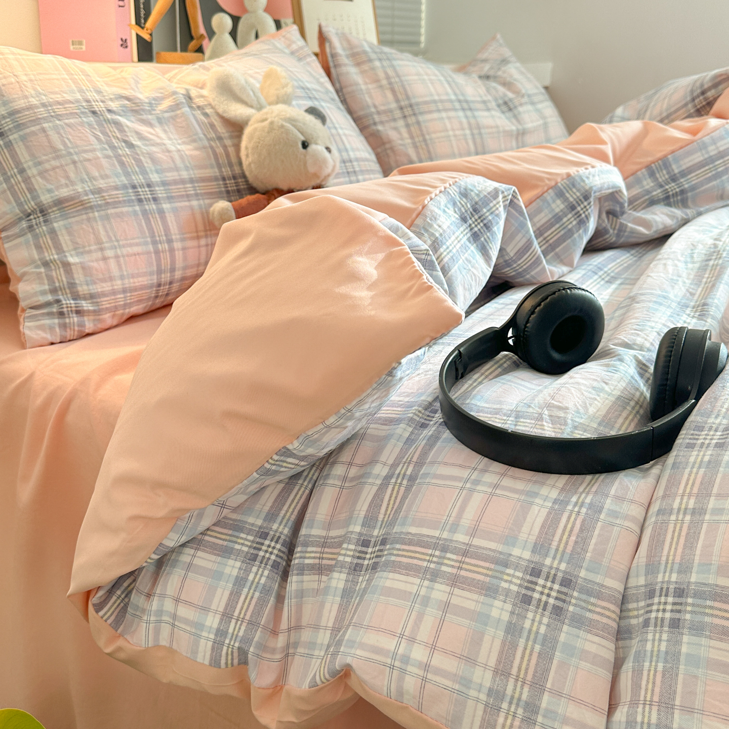 - 2026新款软糯水洗棉条格无印宜家风混搭系列单品被套 混搭粉格