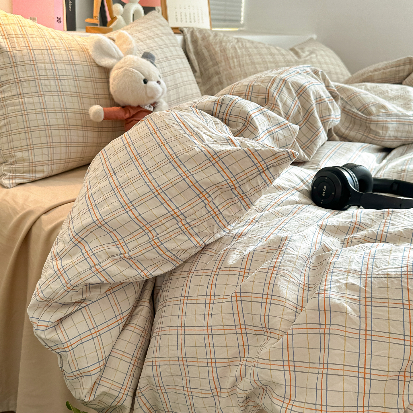 - 2026新款软糯水洗棉条格无印宜家风混搭系列单品被套 混搭米驼