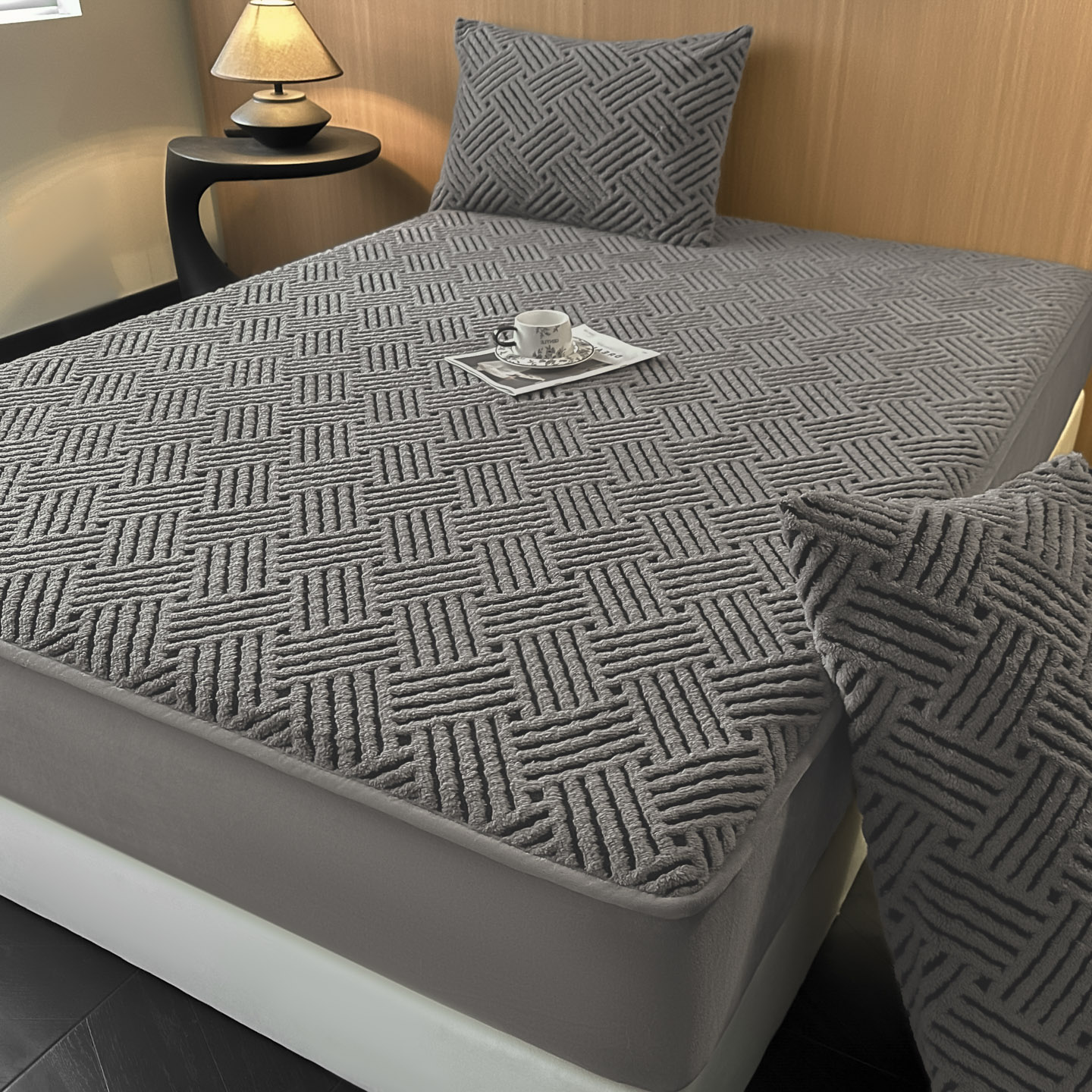 - 2026新款舒棉绒提花防水床笠-利奥 利奥-玄灰
