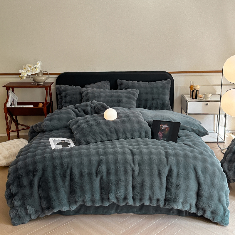 - 2025新款高奢兔毛四件套 云雾-深灰