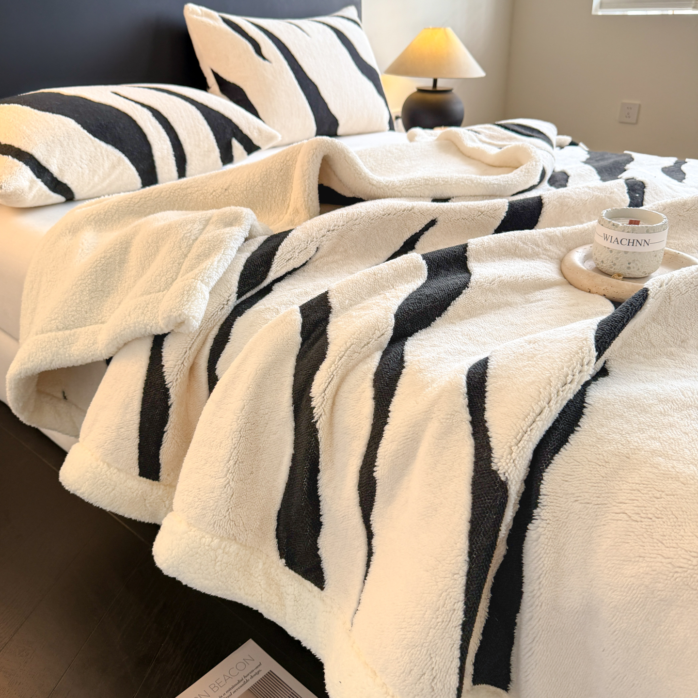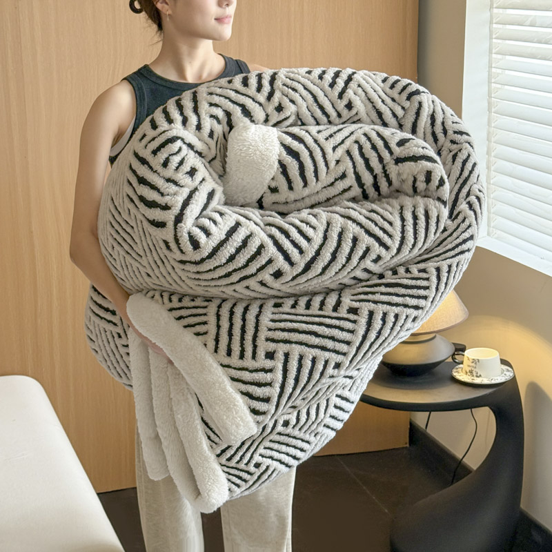 - 2025新款塔芙绒提花双层毛毯-缦纱-凯丽 凯丽-米白