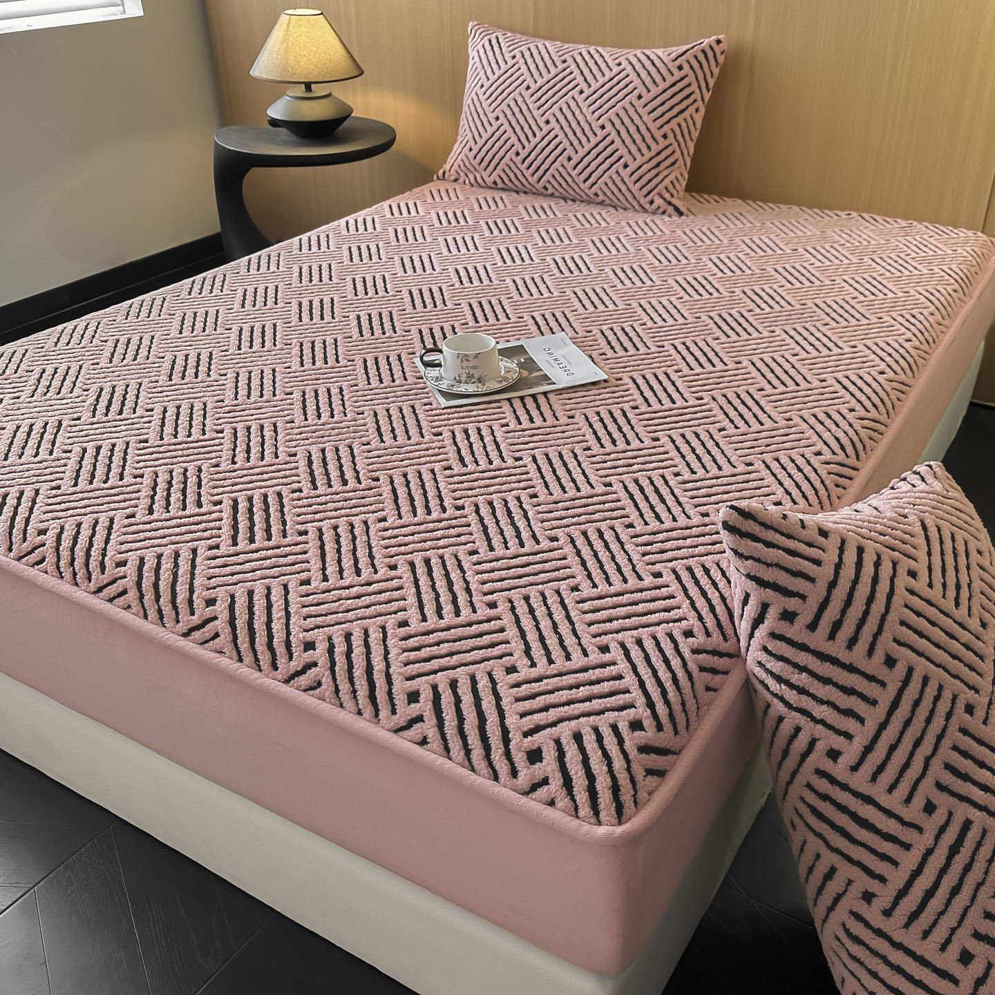 - 2026新款舒棉绒提花防水床笠-利奥 利奥-杏粉