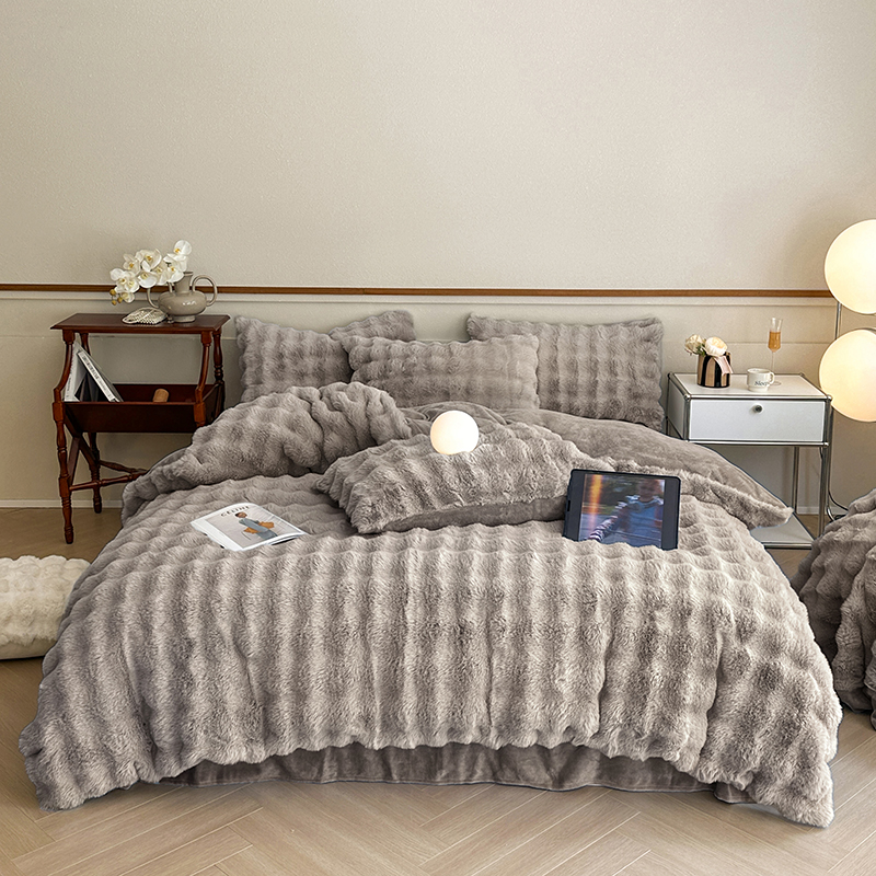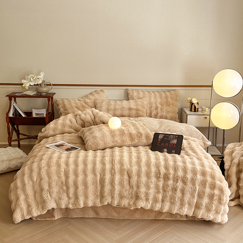 - 2025新款高奢兔毛四件套 莫兰迪咖