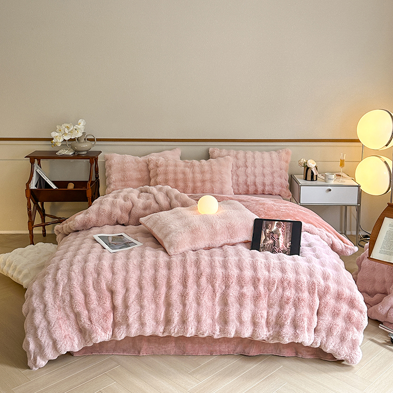 - 2025新款高奢兔毛四件套 波尔多粉