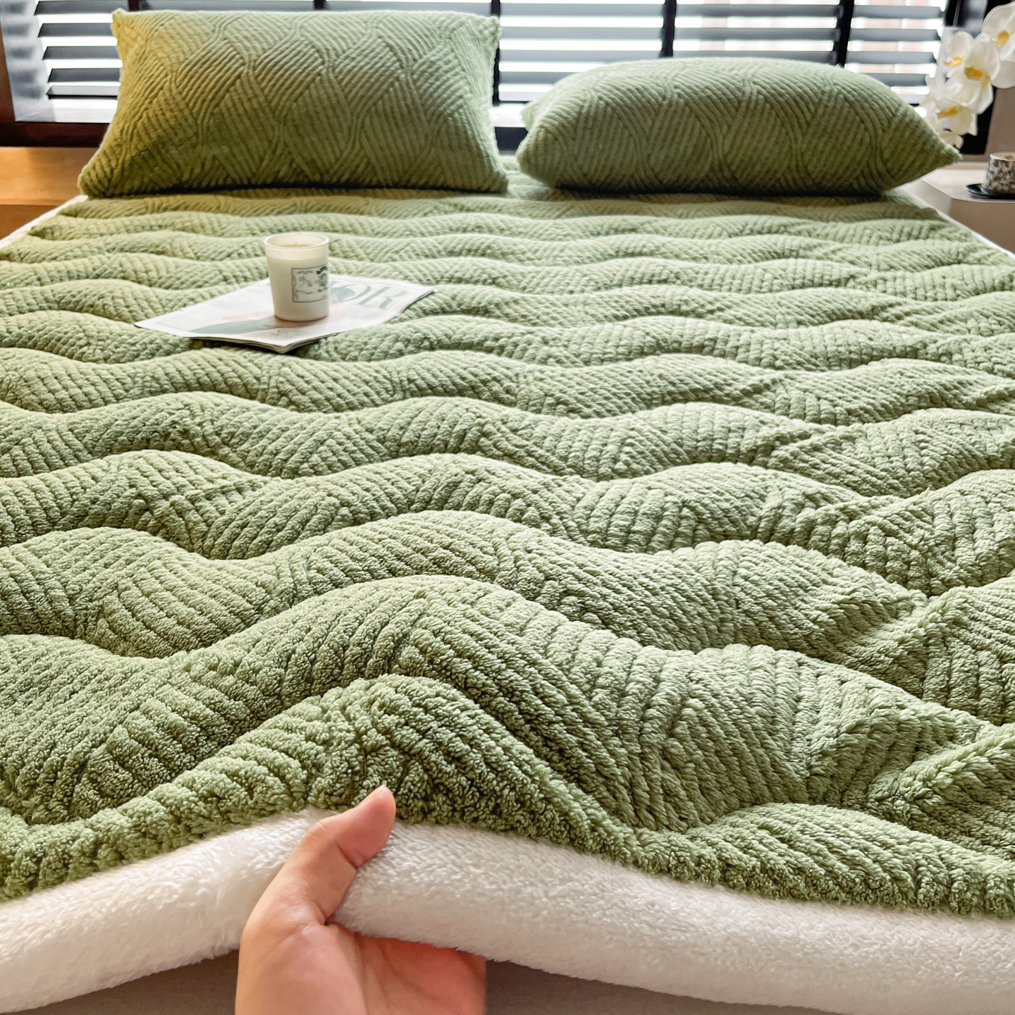 - 2025新款塔芙绒提花双层毛毯-缦纱-凯丽 凯丽-茶绿
