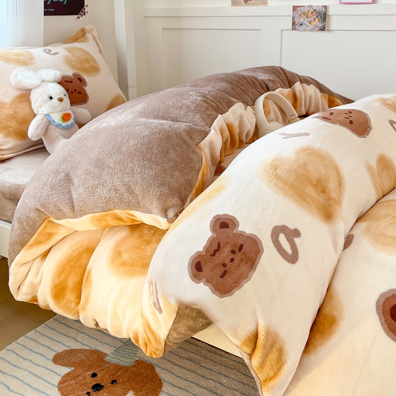 - 2025新款高克重雪花绒卡通印花加厚保暖大床单床笠 床笠巧克力熊