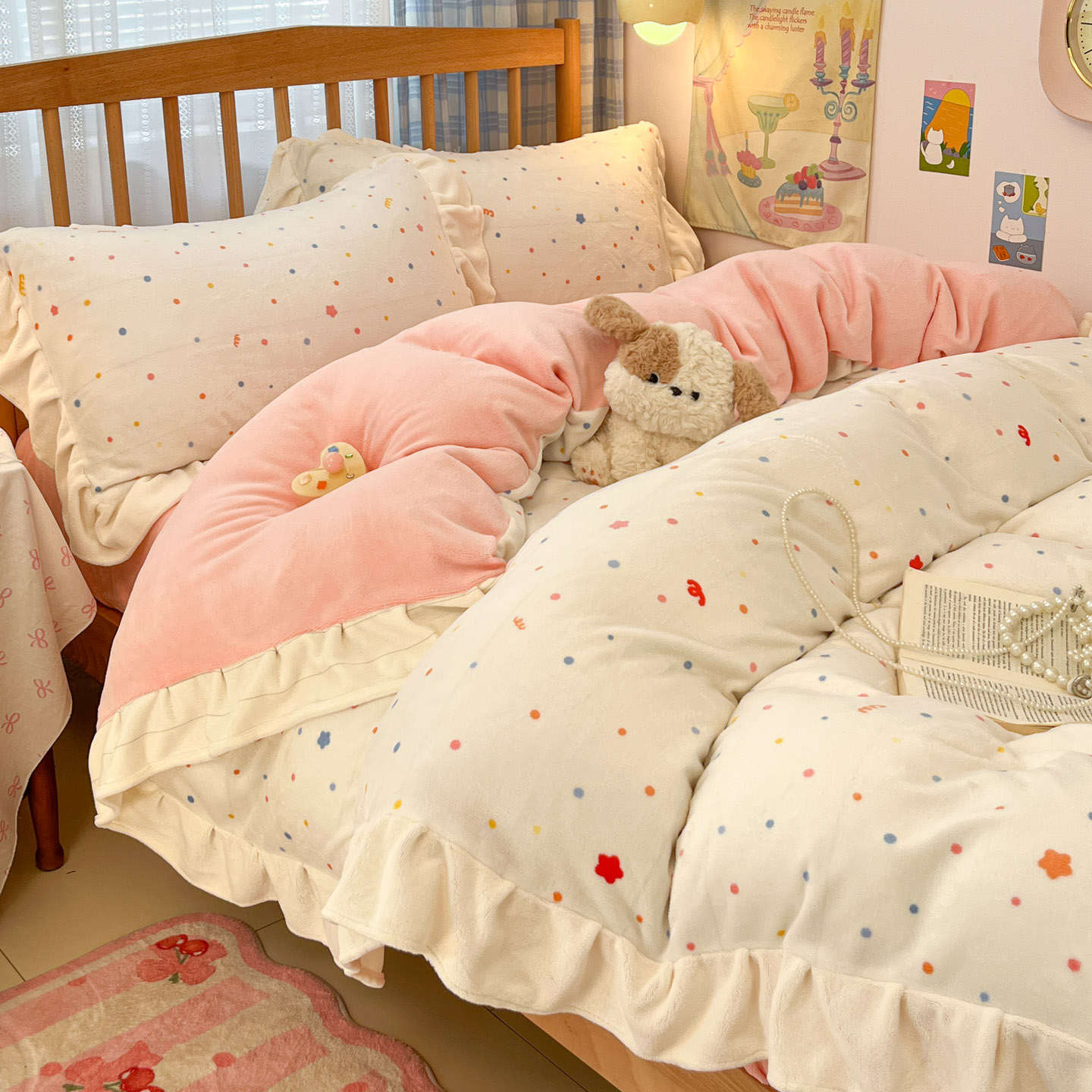 - 2025新款高克重雪花绒卡通印花加厚保暖大床单床笠 床笠甜蜜日常粉