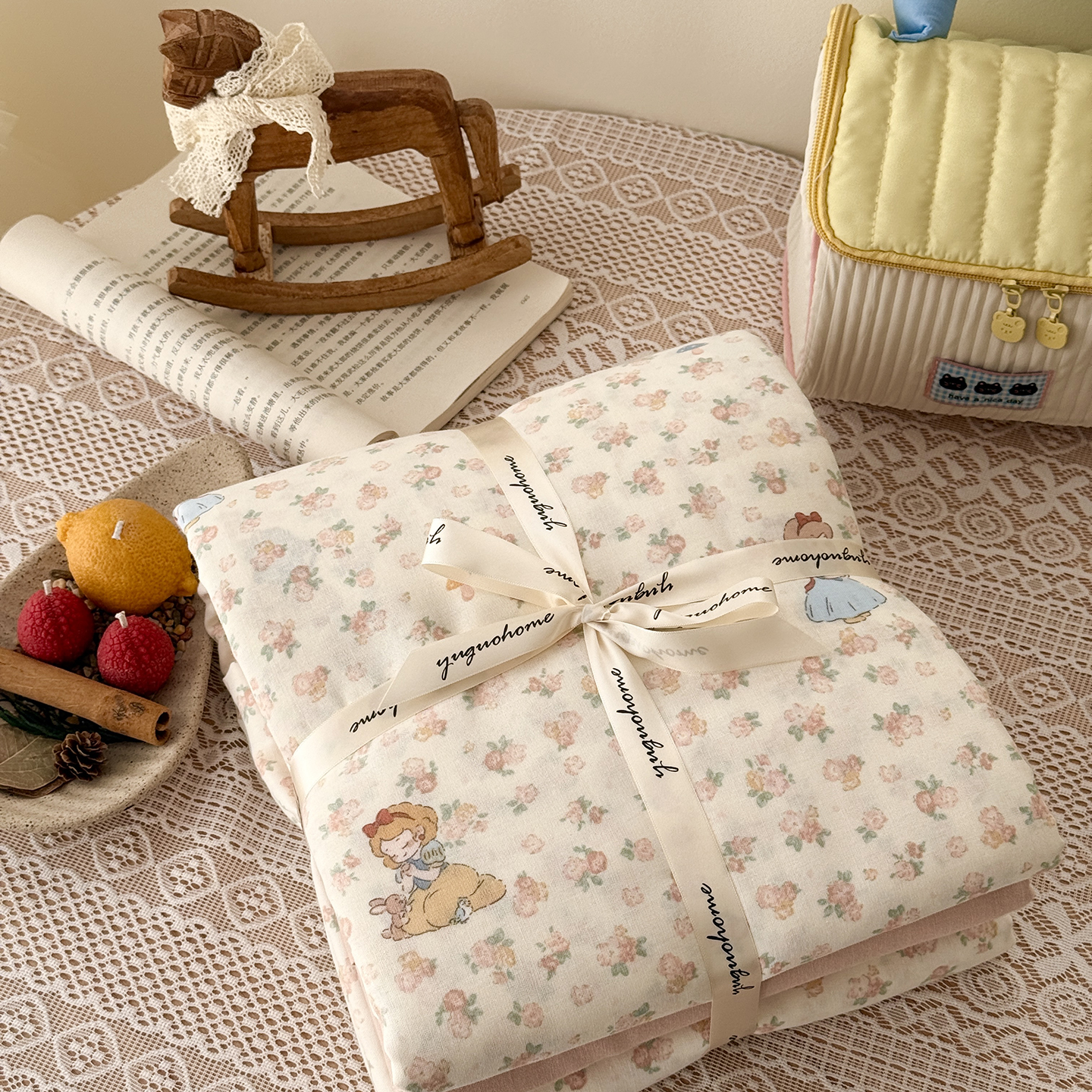 - 2026新款全棉双层纱四件套 甜蜜蜜