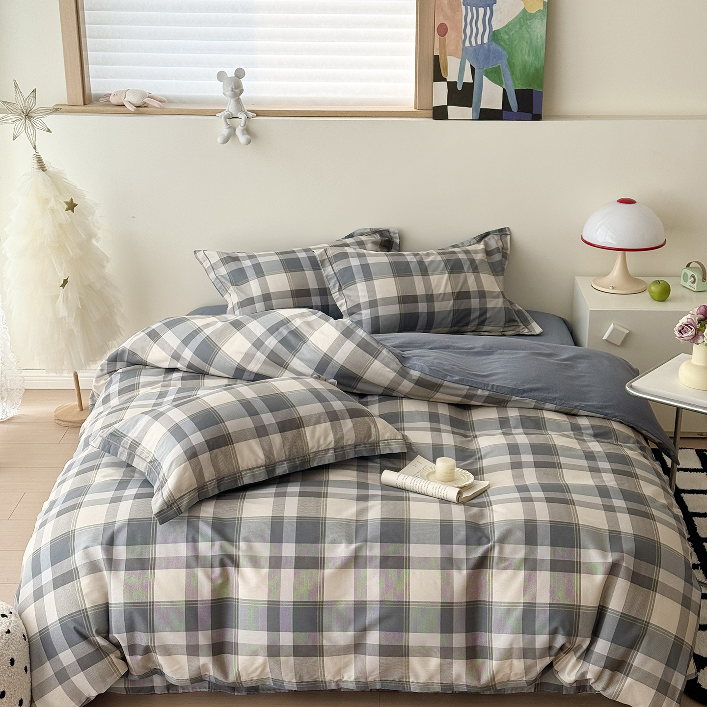 - 2026新款全棉双层纱四件套 复古黑格