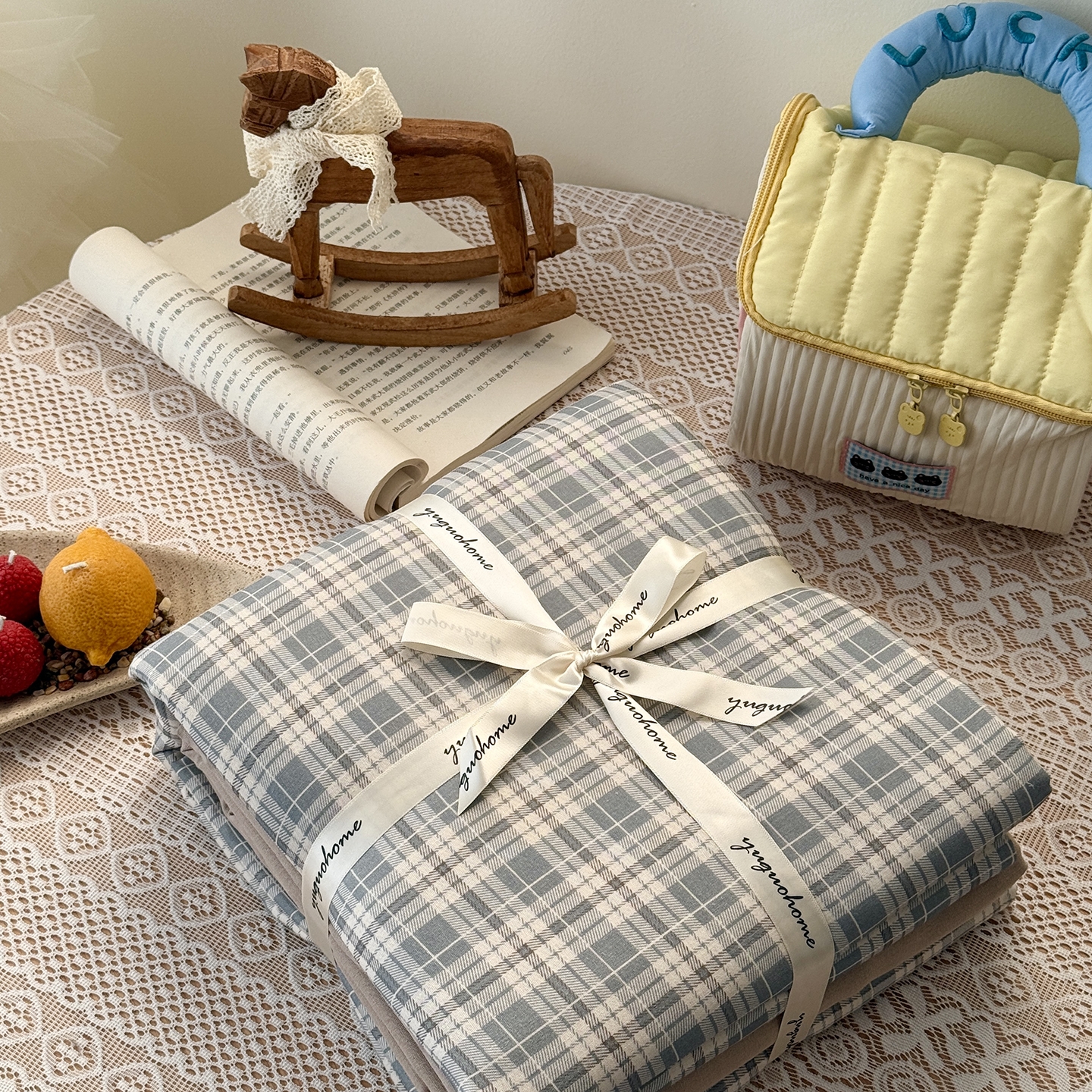 - 2026新款全棉双层纱四件套 跷跷马