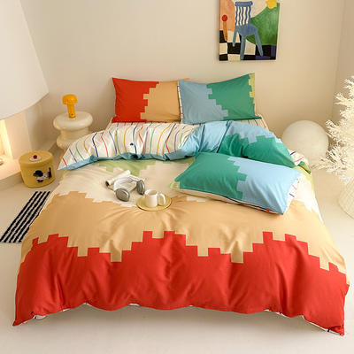 - 2025新款全棉13372卡通大版数码印花三件套四件套 彩虹糖