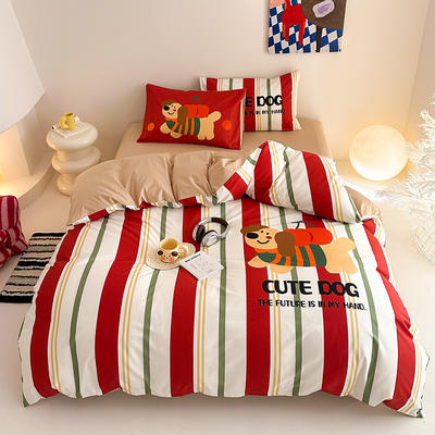 - 2025新款全棉13372卡通大版数码印花三件套四件套 可爱小狗(红)
