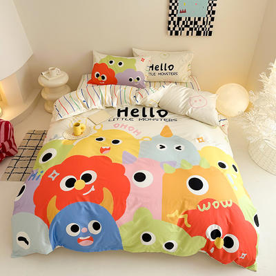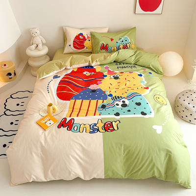 - 2025新款全棉13372卡通大版数码印花三件套四件套 呆萌小怪兽