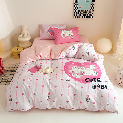 - 2025新款全棉13372卡通大版数码印花三件套四件套 爱心猫