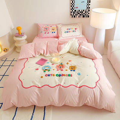 - 2025新款全棉13372卡通大版数码印花三件套四件套 小饼干(粉)