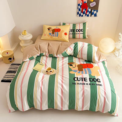 - 2025新款全棉13372卡通大版数码印花三件套四件套 雪糕狗(绿)