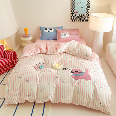 - 2025新款全棉13372卡通大版数码印花三件套四件套 小奶狗