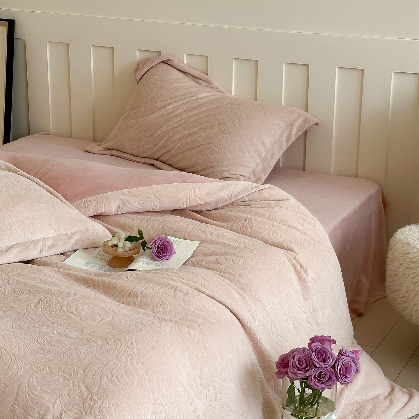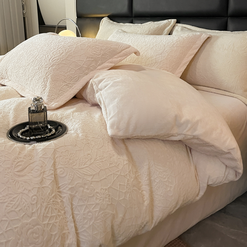 - 2025新款花卉系列高克重牛奶绒雕花四件套