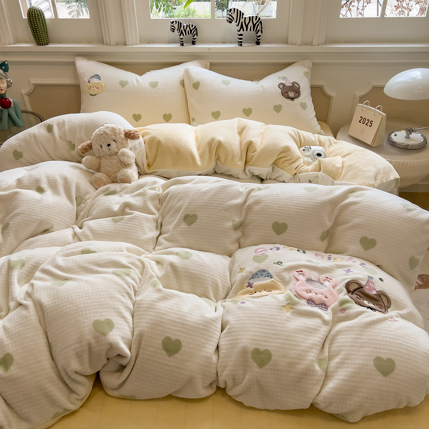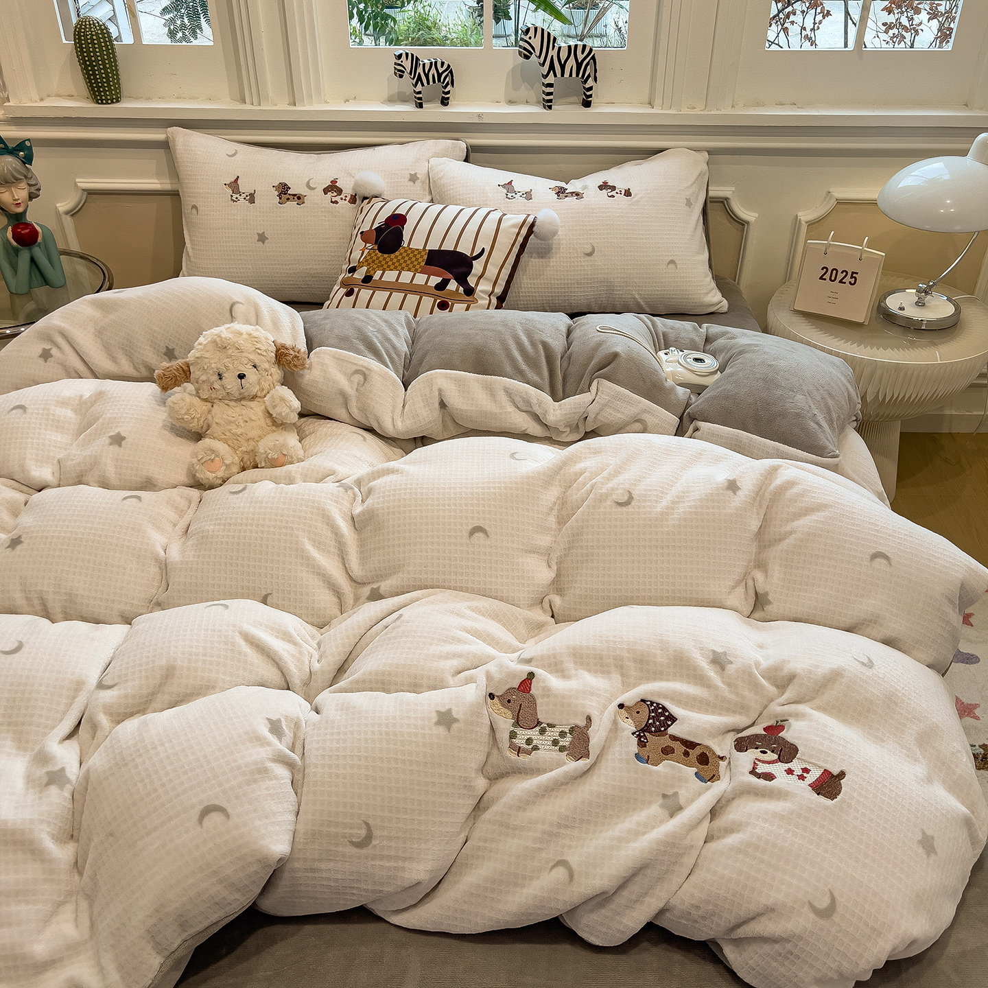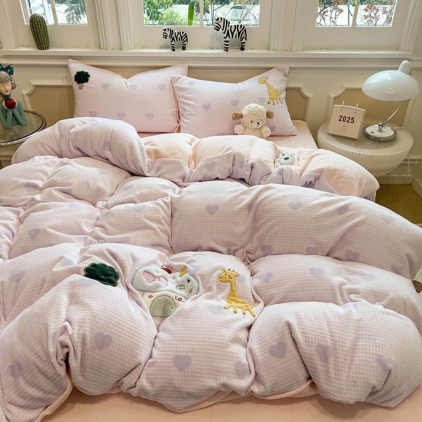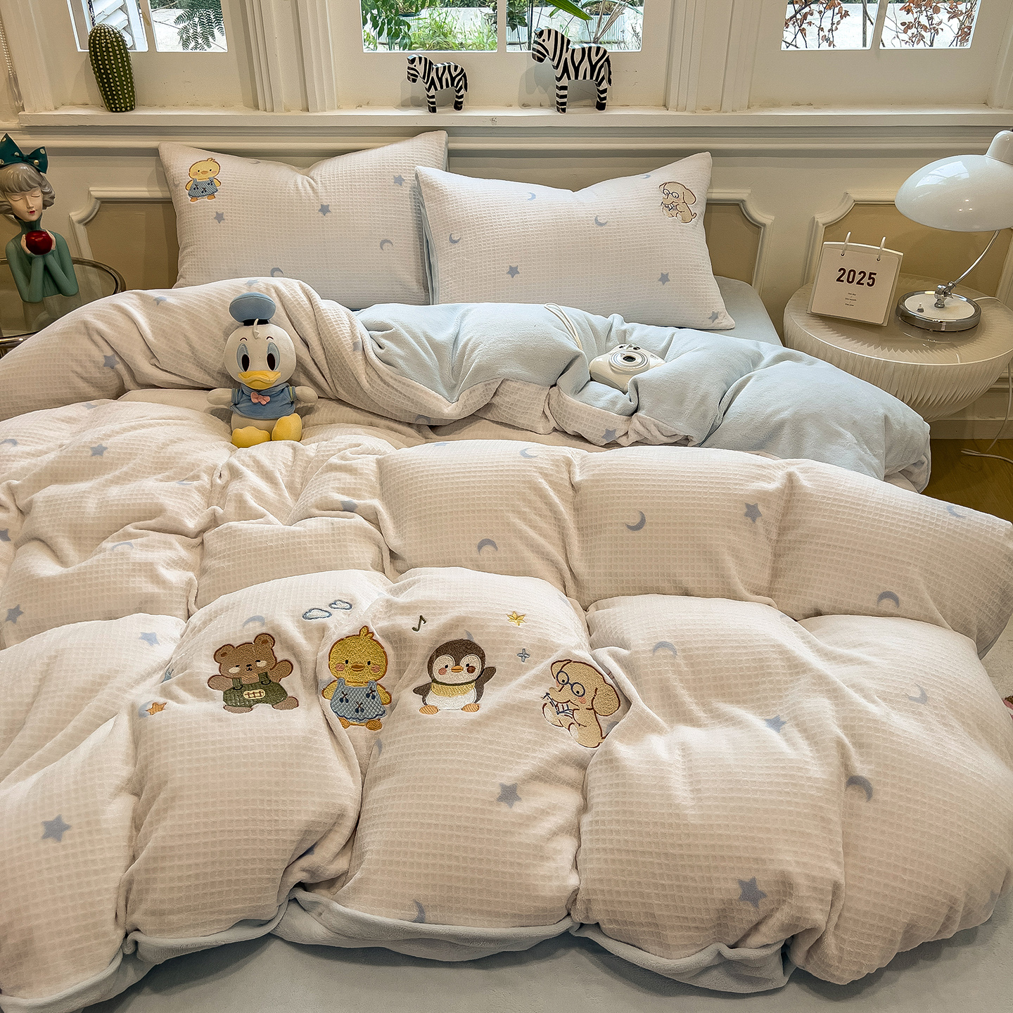 - 2025新款秋冬牛奶绒绣花四件套 牛奶绒雕花绣花四件套 印加绣卡通绣花四件套