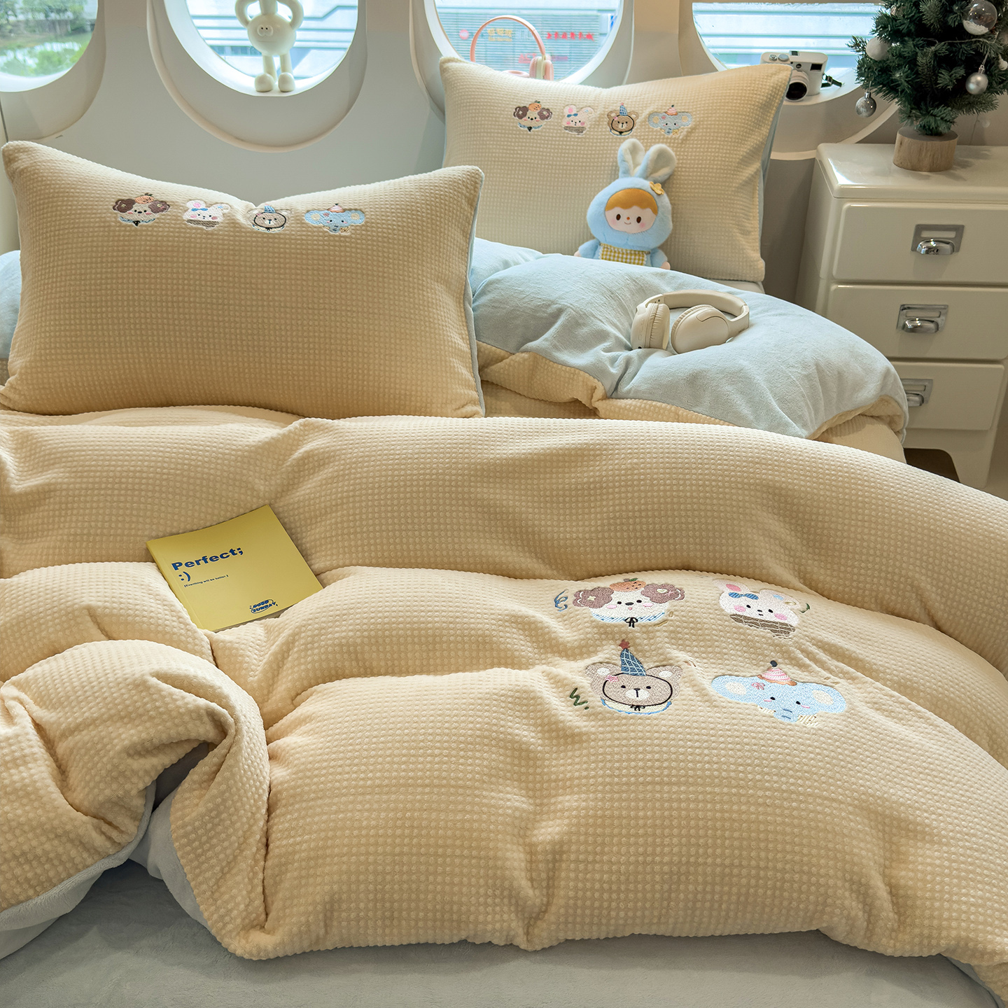 - 2025新款秋冬兔绒四件套 轻奢风兔绒四件套 高端兔兔绒四件套