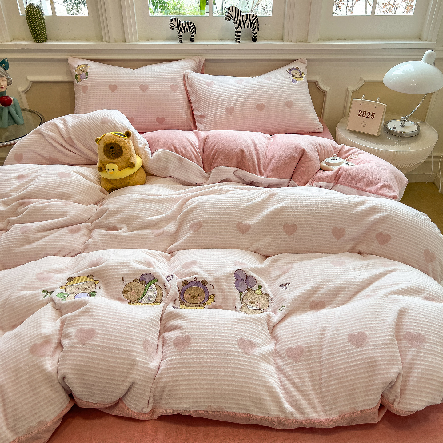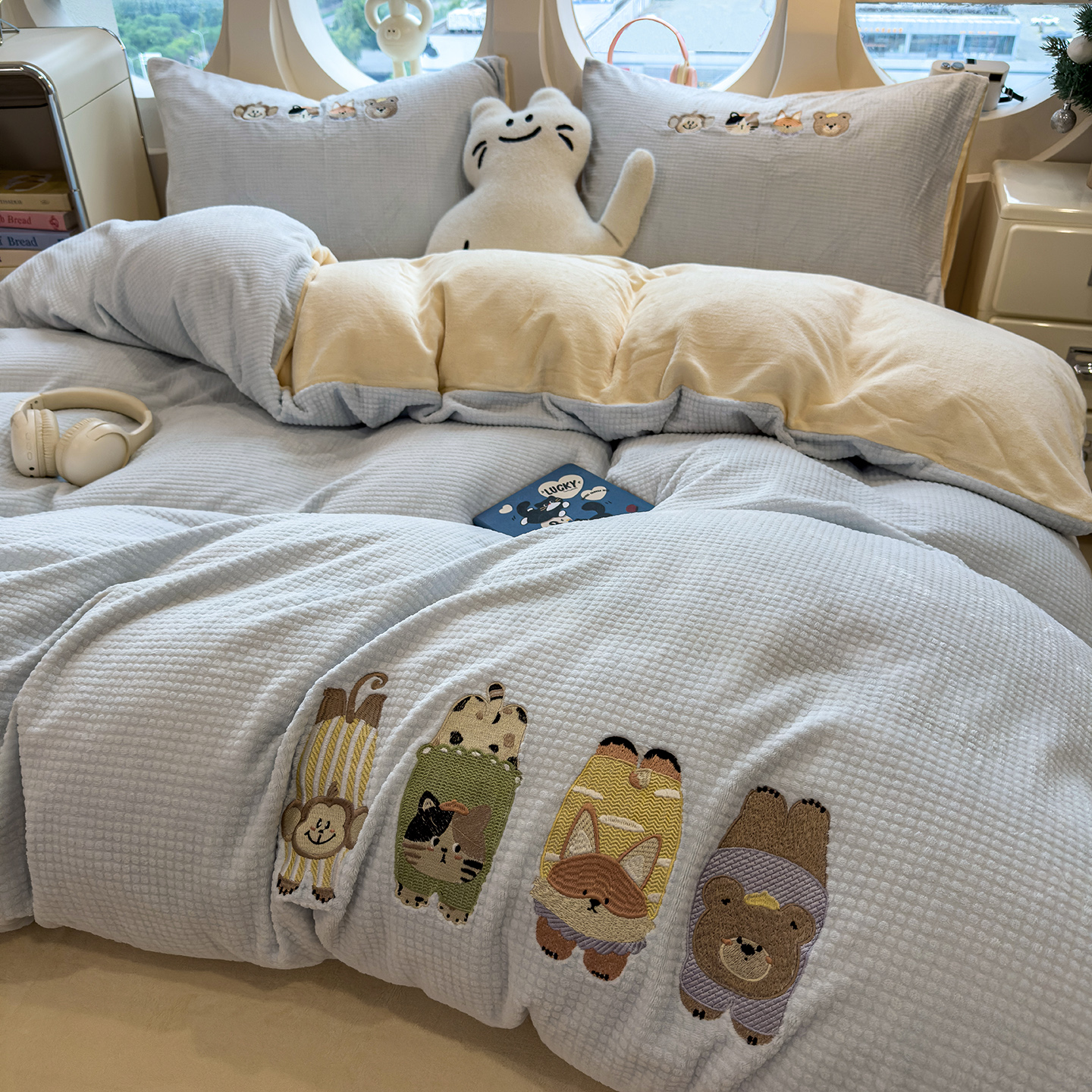 - 2025秋冬牛奶绒绣花四件套 牛奶绒雕花绣花四件套 牛奶绒卡通绣花四件套