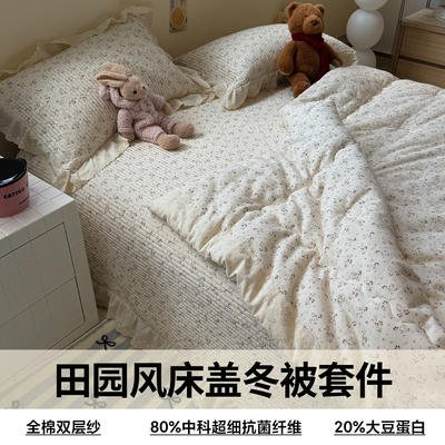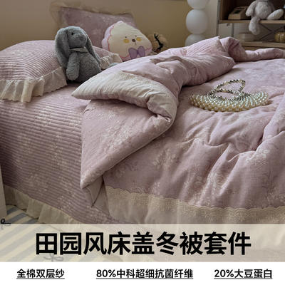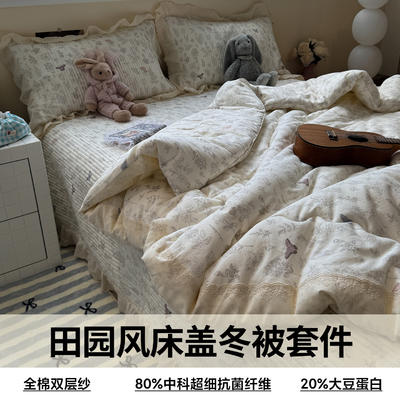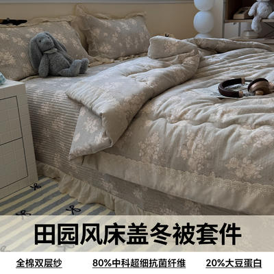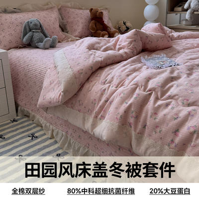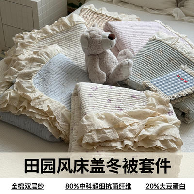 - 2025新款全棉双层纱田园风床盖冬被四套件系列