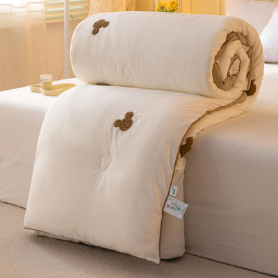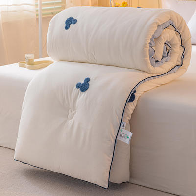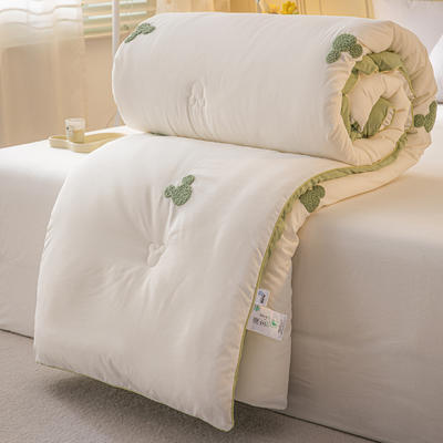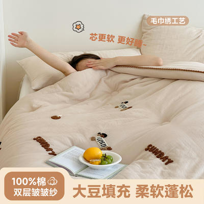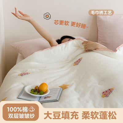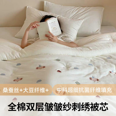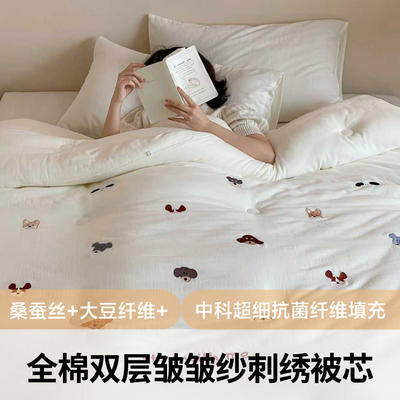 - 全棉双层皱皱纱刺绣蚕丝大豆抗菌被子被芯