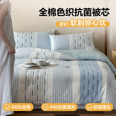 - 全棉色织简约风艾阳绒抗菌被子被芯