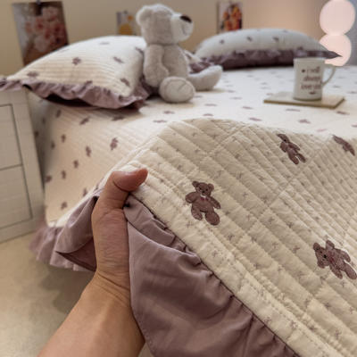 - 2025新款小清新花边款大豆被床盖四件套
