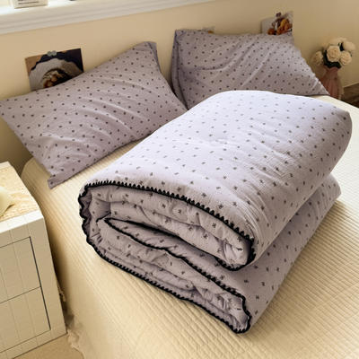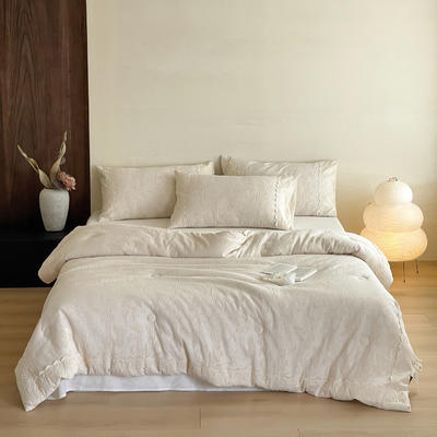 - 水洗色织提花全棉三层纱无印风蚕蛹蛋白夏被四件套