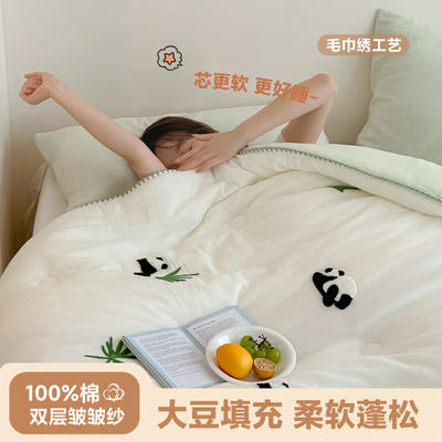 - 全棉双层皱皱纱毛巾绣抗菌大豆被