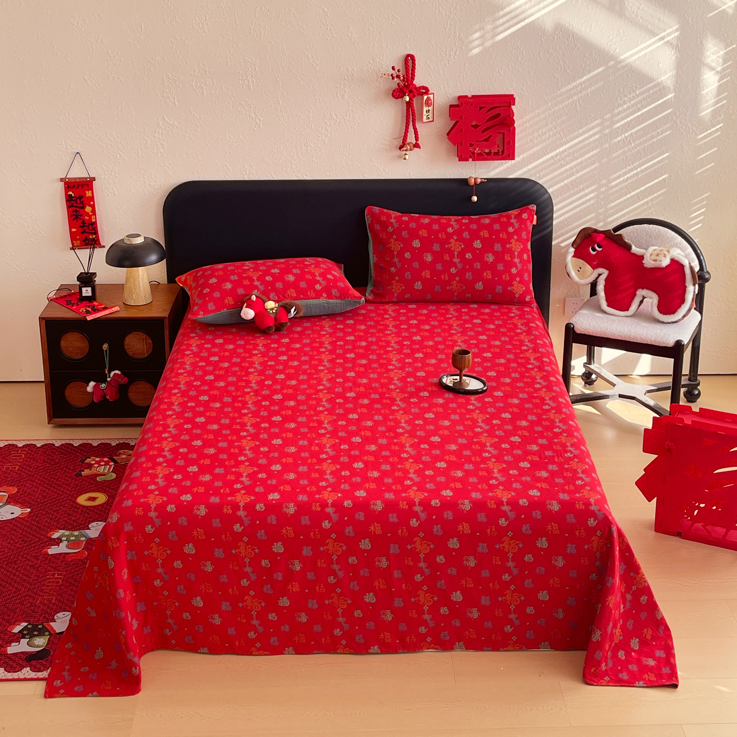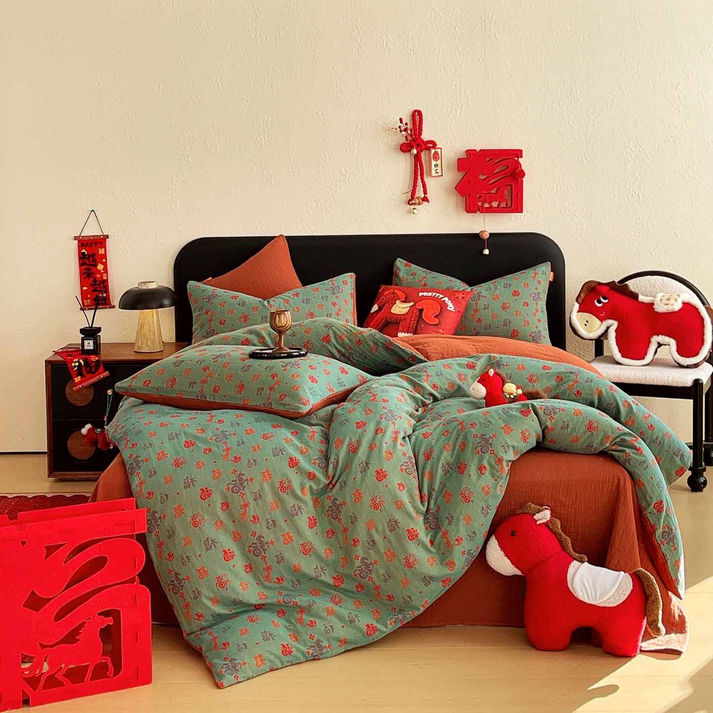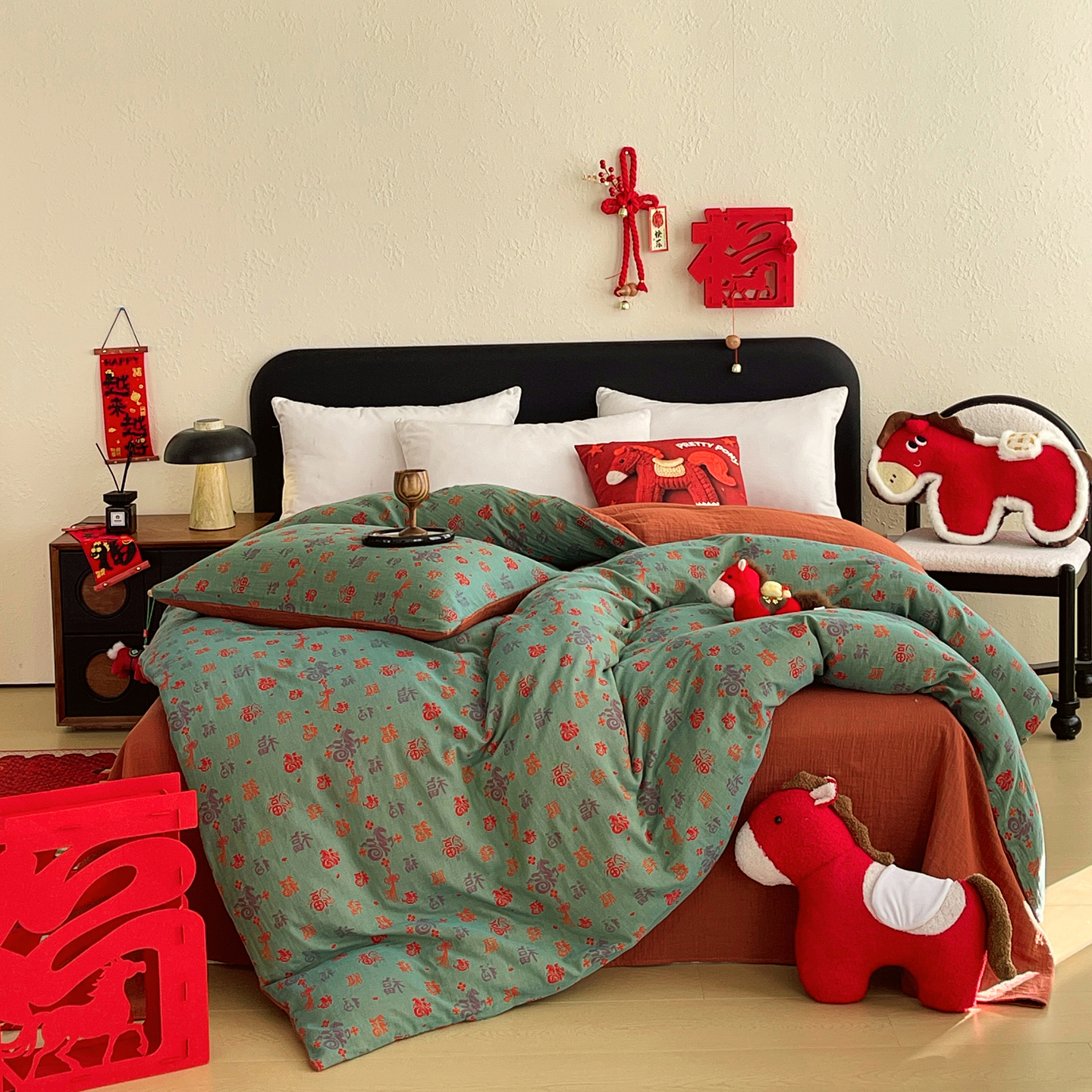 - 2026新款全棉色织双层纱提花百福系列拉链款-单床单