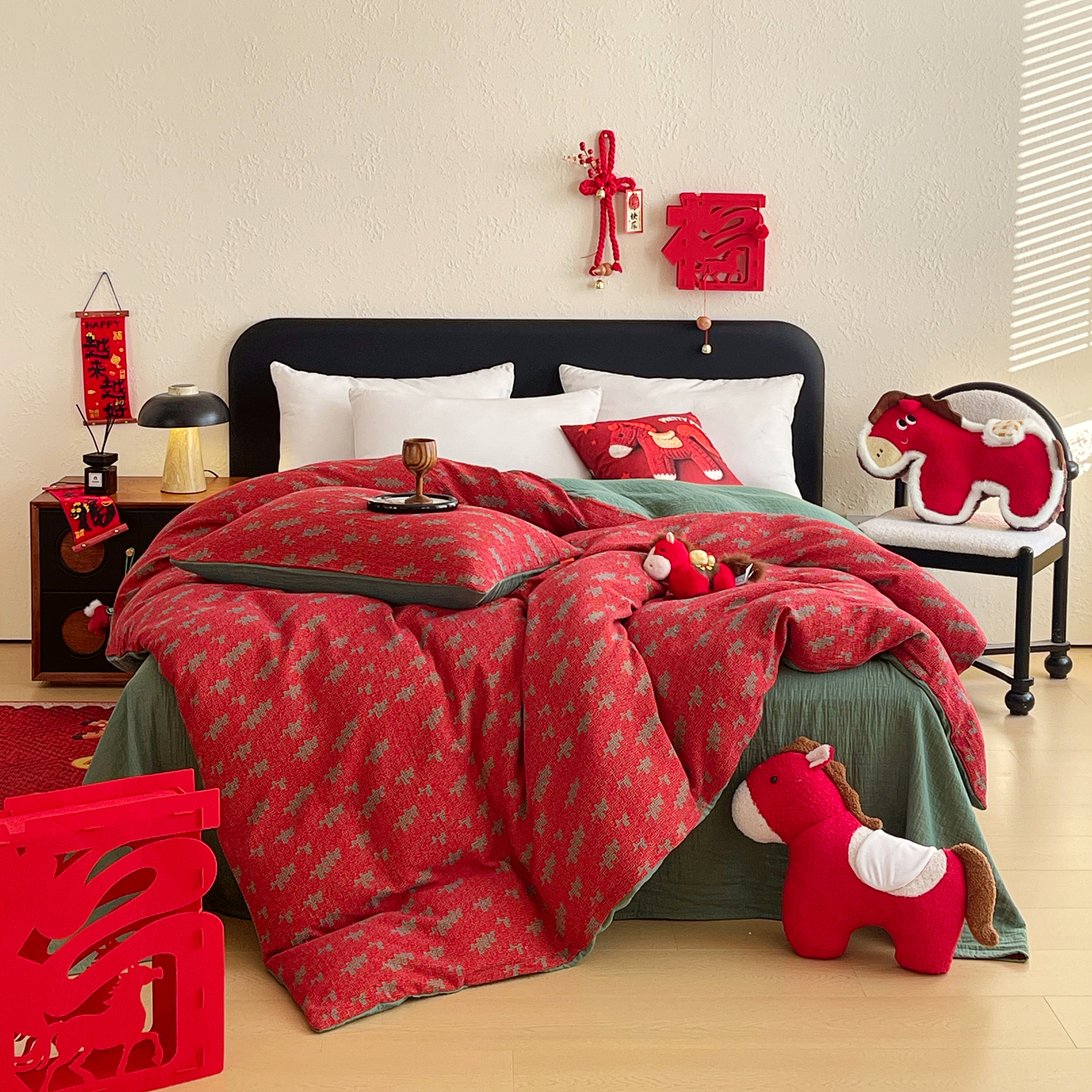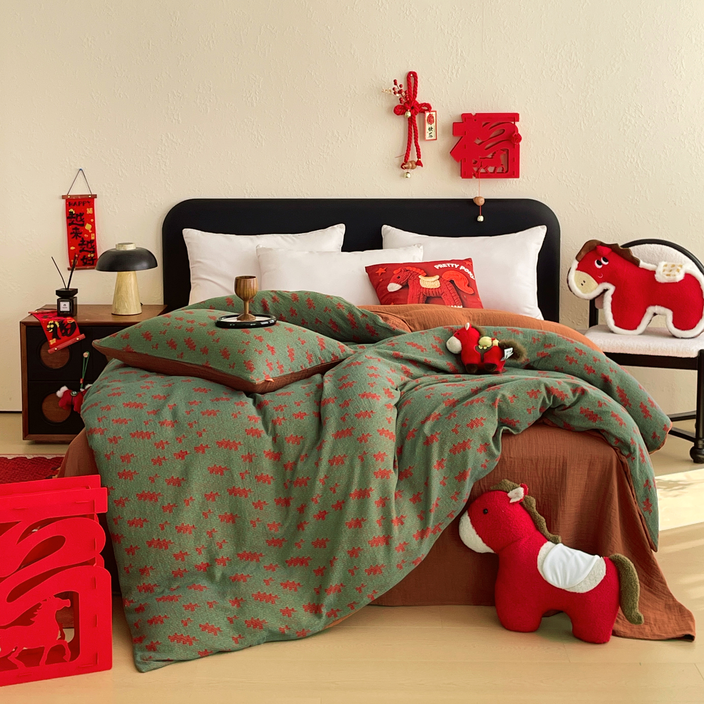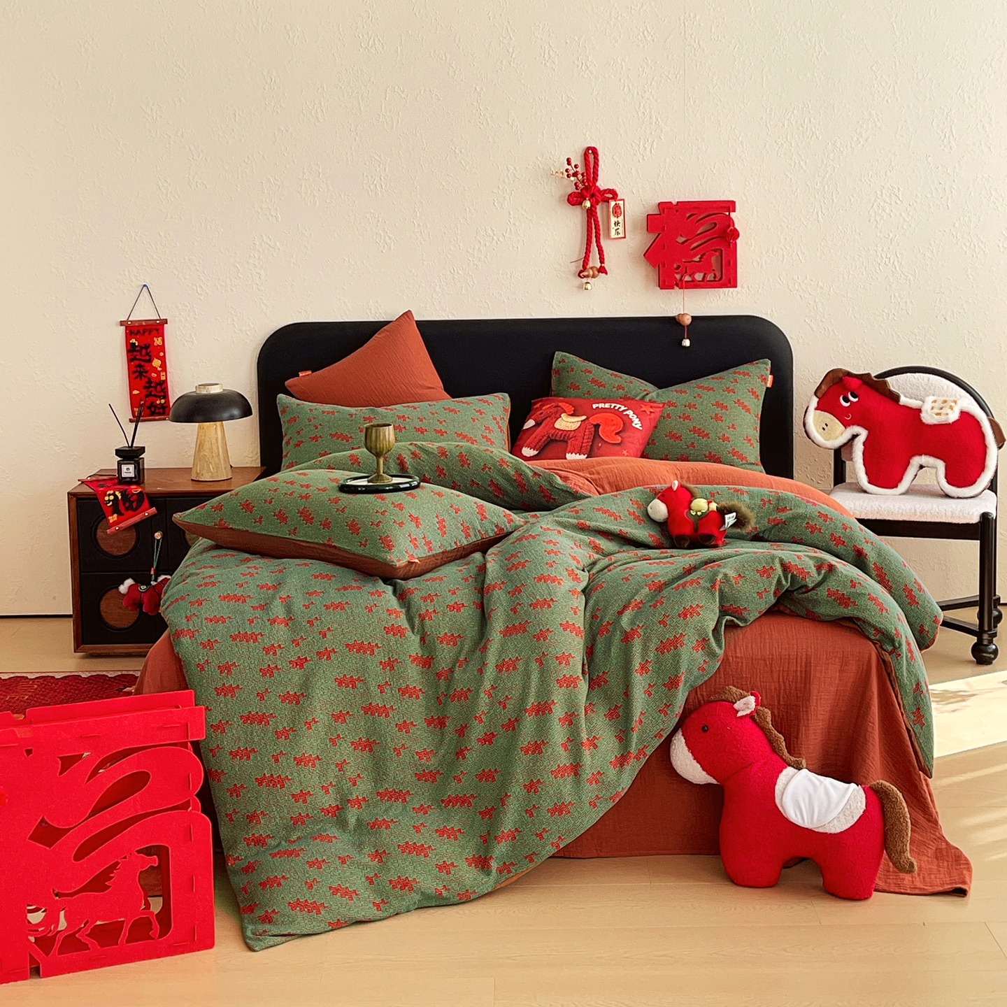 - 2026新款全棉色织双层纱提花百福系列拉链款-单床单