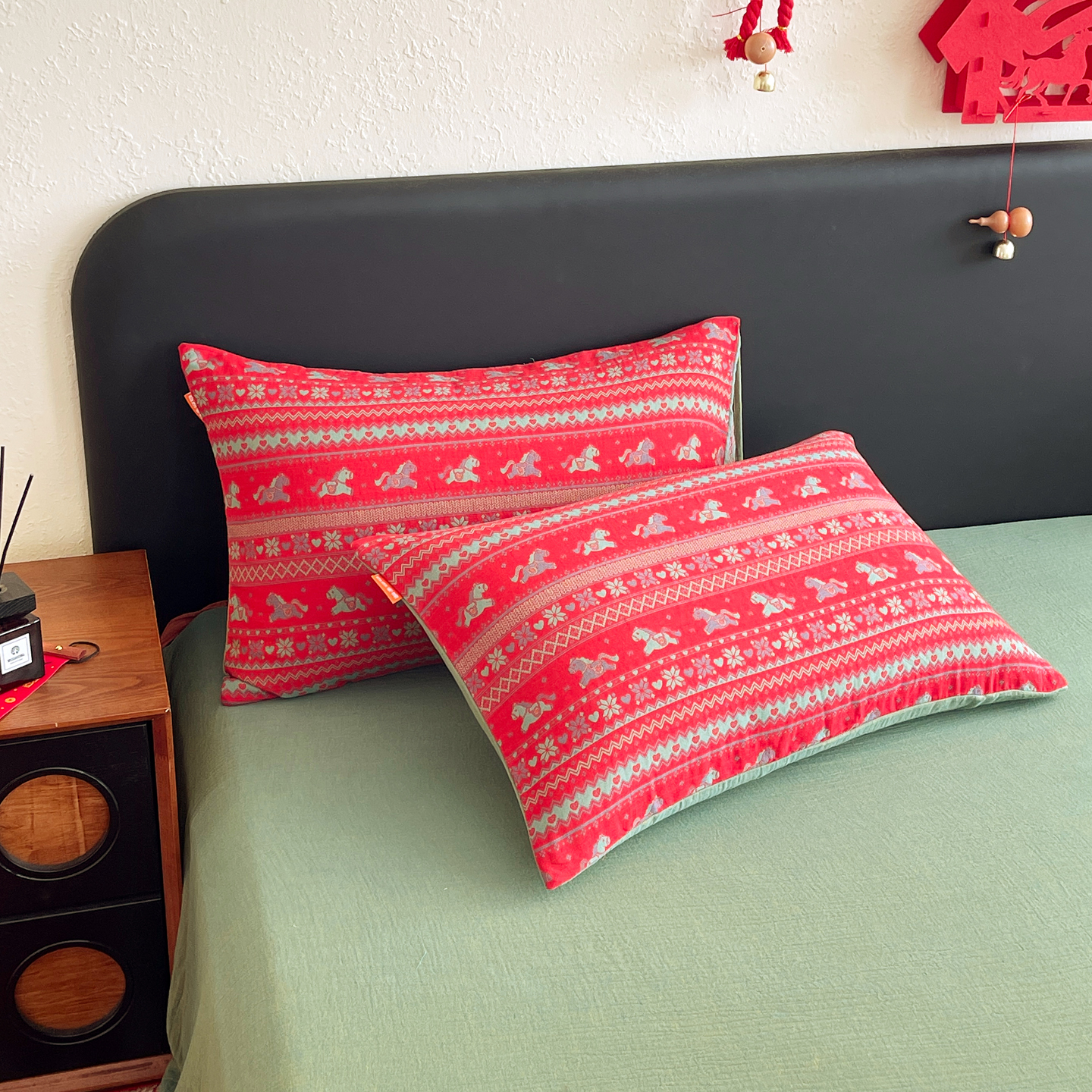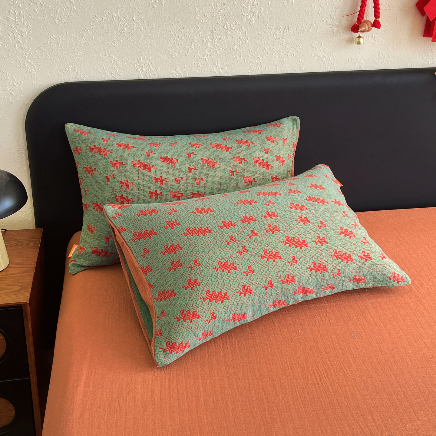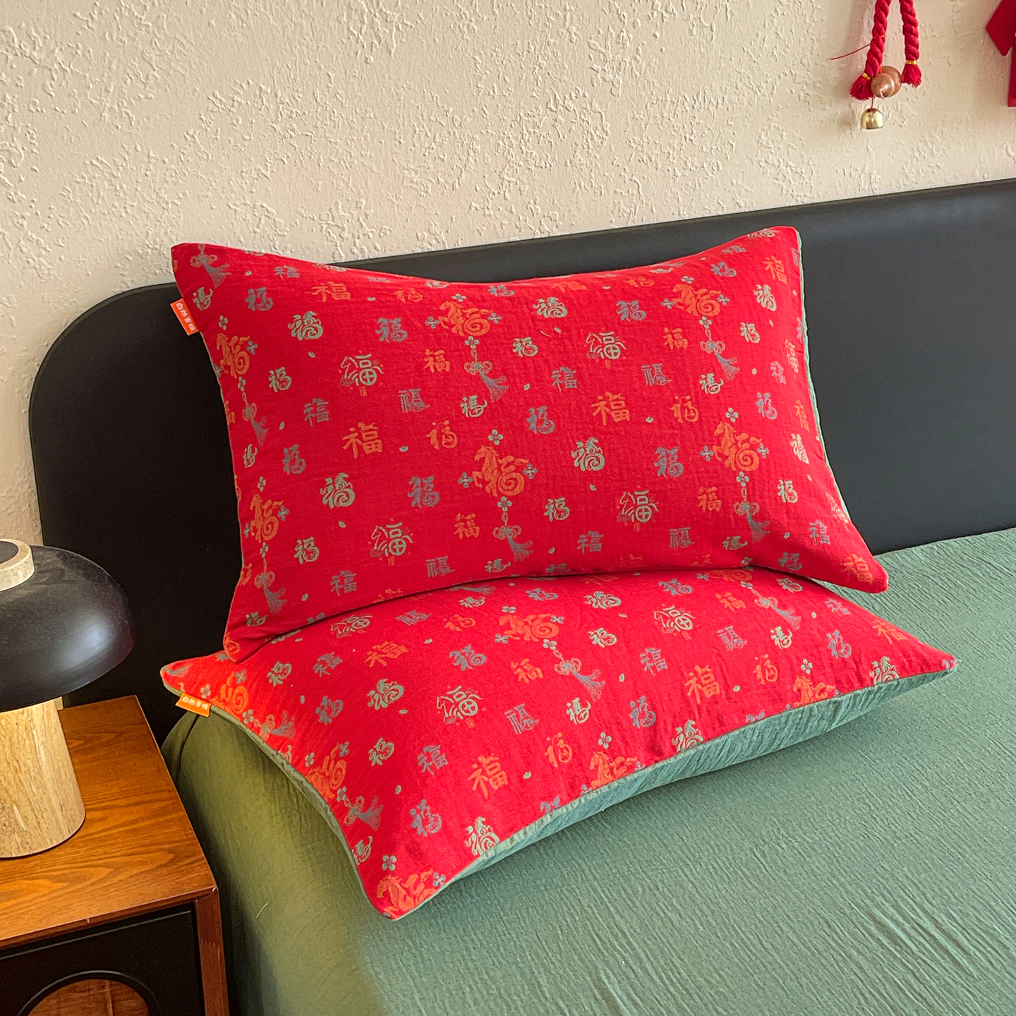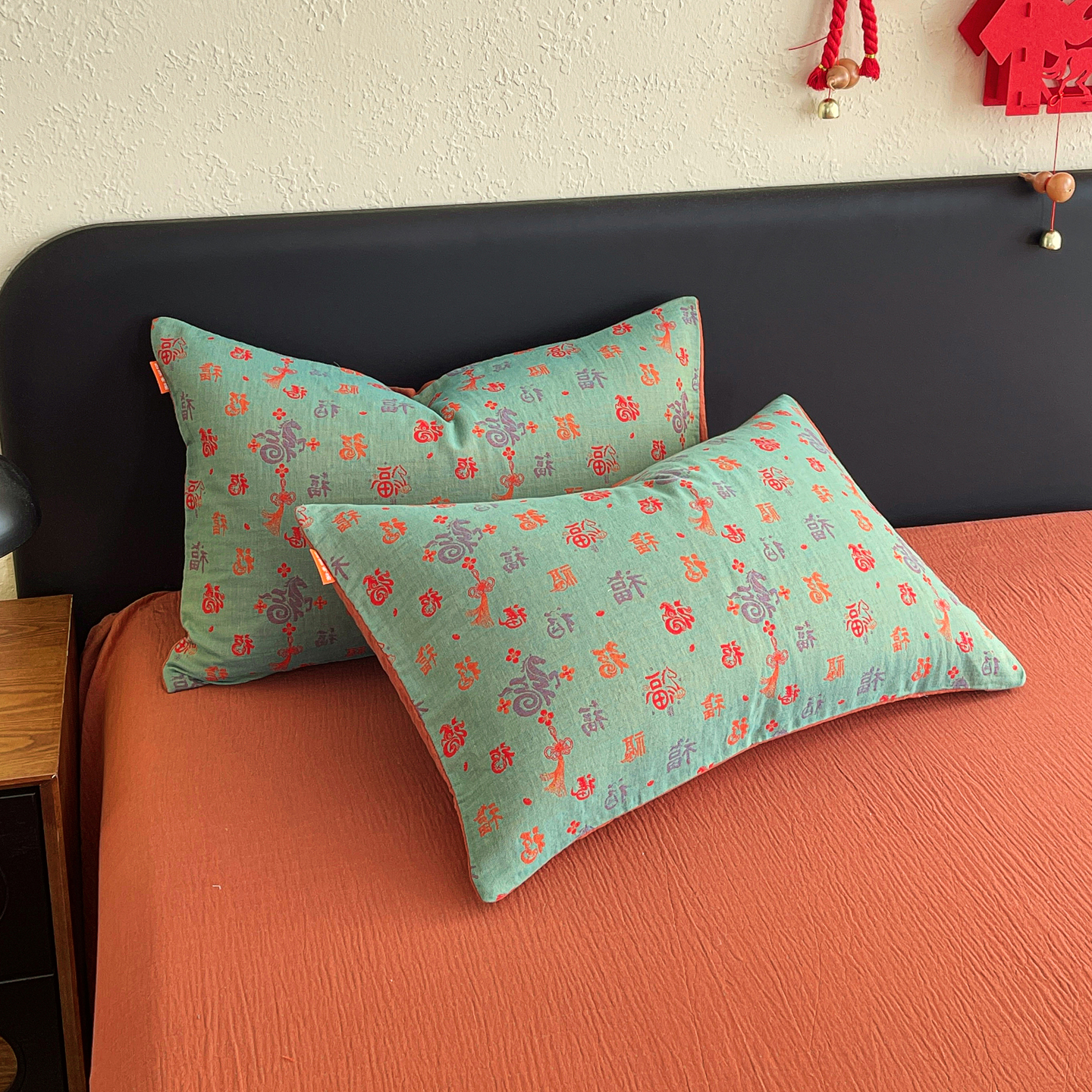 - 2026新款全棉色织双层纱提花百福系列拉链款-单枕套